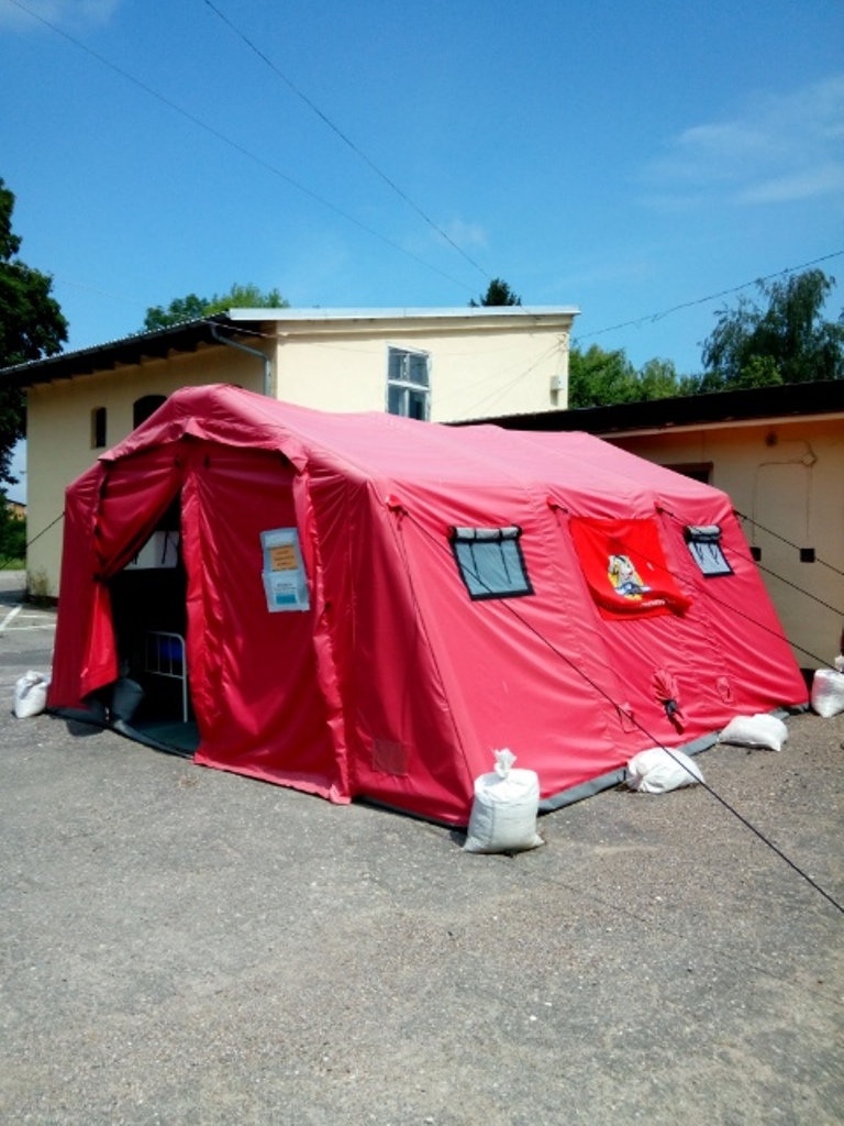 ▪ strażacy Jednostki Ratowniczo-Gaśniczej w Sławnie na bieżąco kontrolowali namiot pneumatyczny pełniący funkcję polowej izby przyjęć przy Szpitalu Powiatowym w Sławnie.