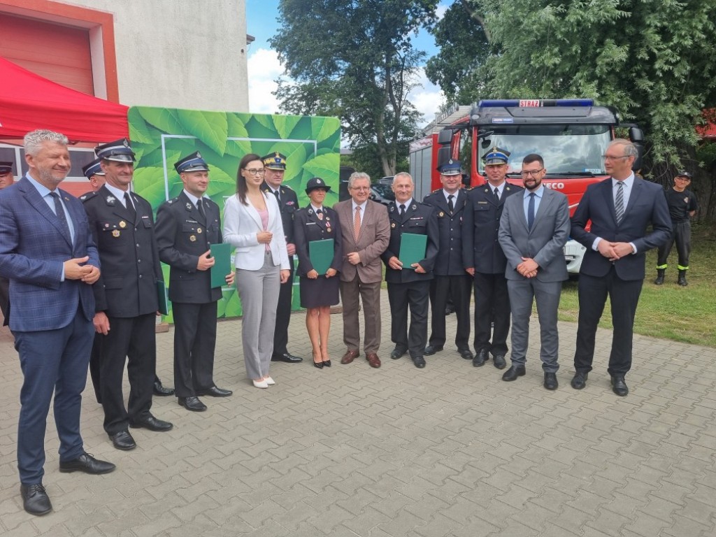 03 lipca 2023 roku na placu przy jednostce Ochotniczej Straży Pożarnej w Rymaniu odbyło się uroczyste wręczeniu umów w ramach programu „EKO- Strażak”. Umowy odebrały 32 jednostki Ochotniczych Straży Pożarnych w tym 4 Jednostki OSP z powiatu sławieńskiego, OSP Żukowo, OSP Wilkowice, OSP Ostrowiec oraz OSP Dobiesław