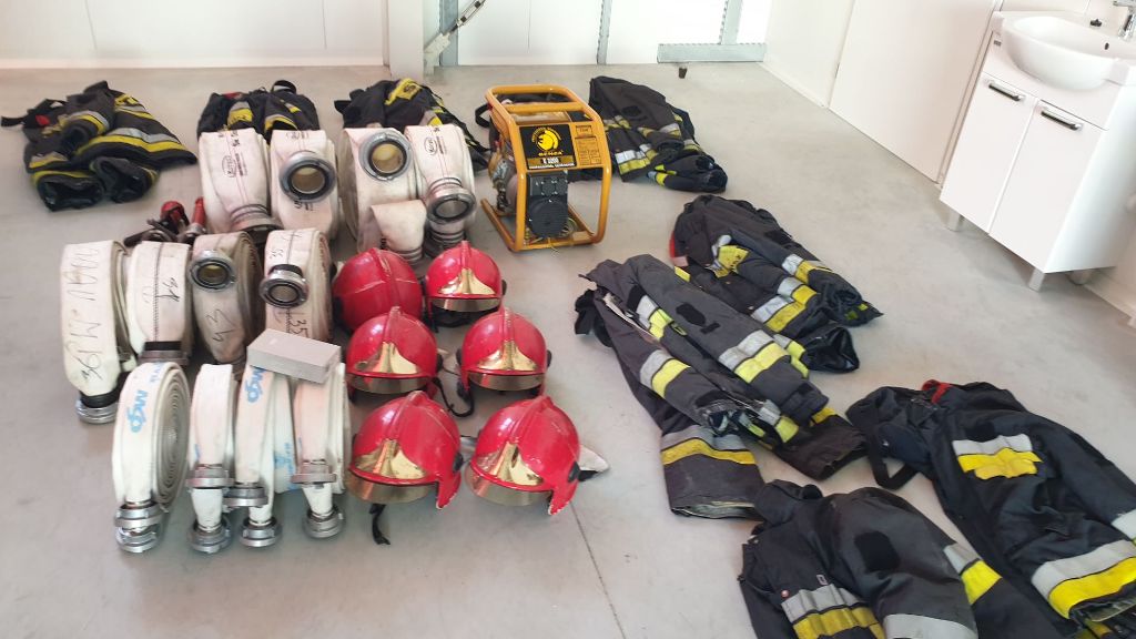 Sprzęt jaki został przekazany to: Kamera termowizyjna, Agregaty prądotwórcze , węże pożarnicze, prądownice, motopompy, odzież specjalna typu Nomex, strażackie buty specjalne, hełmy strażackie, rękawice strażackie, kominiarki.