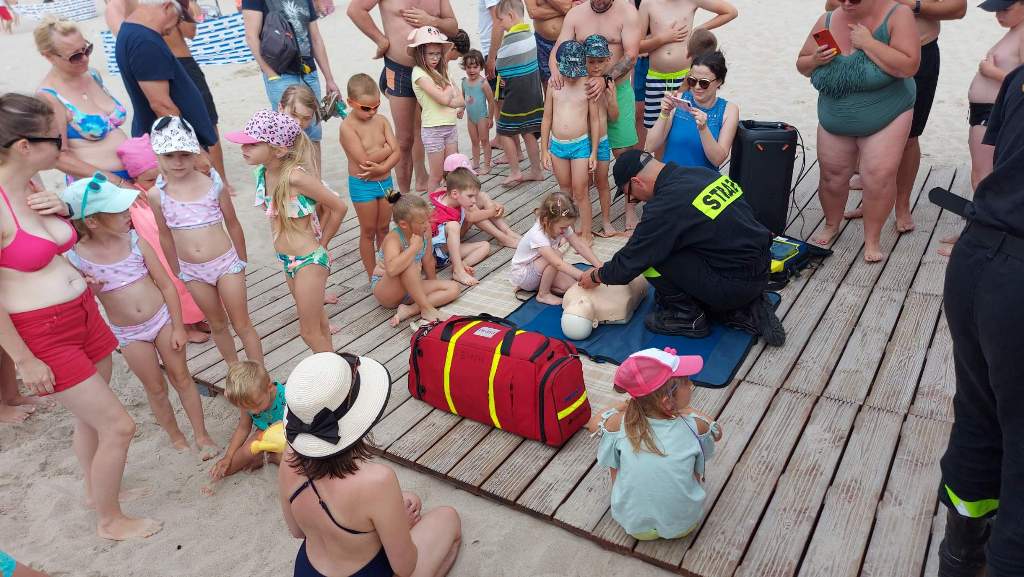Podczas akcji omawiane były zagrożenia, z jakimi można się zetknąć podczas wypoczynku letniego. Przedstawiono również zasady udzielania pierwszej pomocy. Chętni mogli przećwiczyć na manekinie resuscytacje krążeniowo-oddechową.