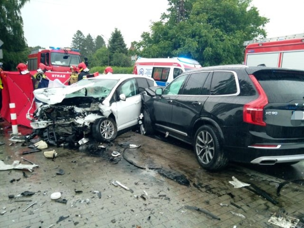 Z chwilą przybycia na miejsce zdarzenia pierwszych zastępów stwierdzono zderzenie samochodów osobowych marki Volvo z Fordem. Zabezpieczono miejsce zdarzenia. W zdarzeniu brały udział trzy osoby. Osoby biorące udział w wypadku zostały przebadane przez Zespół Ratownictwa Medycznego przybyłego na miejsce zdarzenia. Po przebadaniu dwie osoby została przetransportowane przez ZRM do szpitala. W wyniku zdarzenia i poniesionych obrażeń jedna osoba poszkodowana poniosła śmierć.