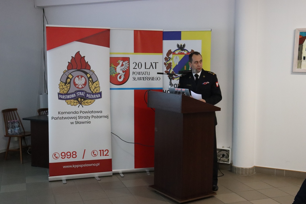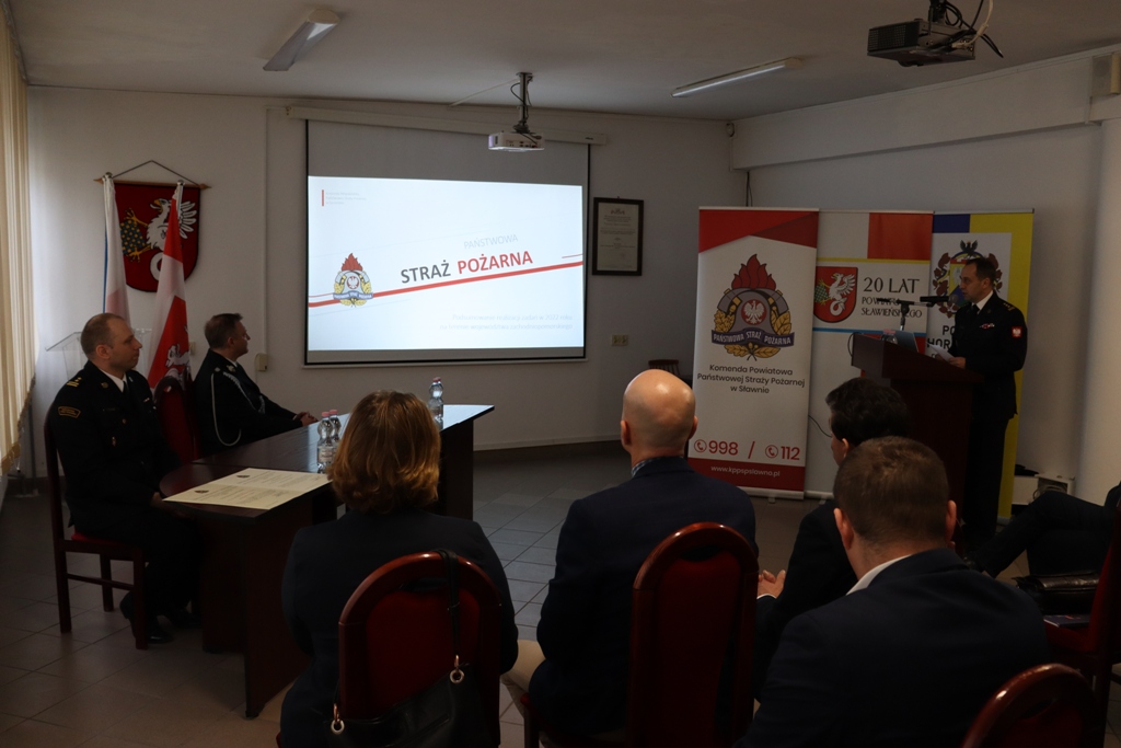 W dniu 17 lutego br. w sali konferencyjnej Starostwa Powiatowego w Sławnie odbyła się narada roczna podsumowująca działalność Komendy Powiatowej Państwowej Straży Pożarnej w Sławnie w 2022 r. Gospodarzem uroczystości był Komendant Powiatowy PSP