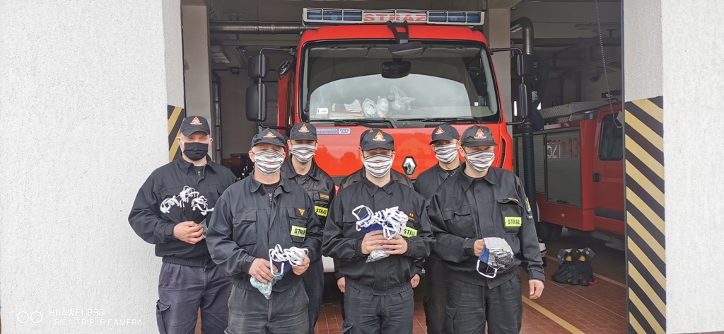 Pani Ewelinie Stach oraz Pani Grażynie Lenarcik za uszycie i bezinteresowne przekazanie maseczek ochronnych dla strażaków Państwowej Straży Pożarnej.