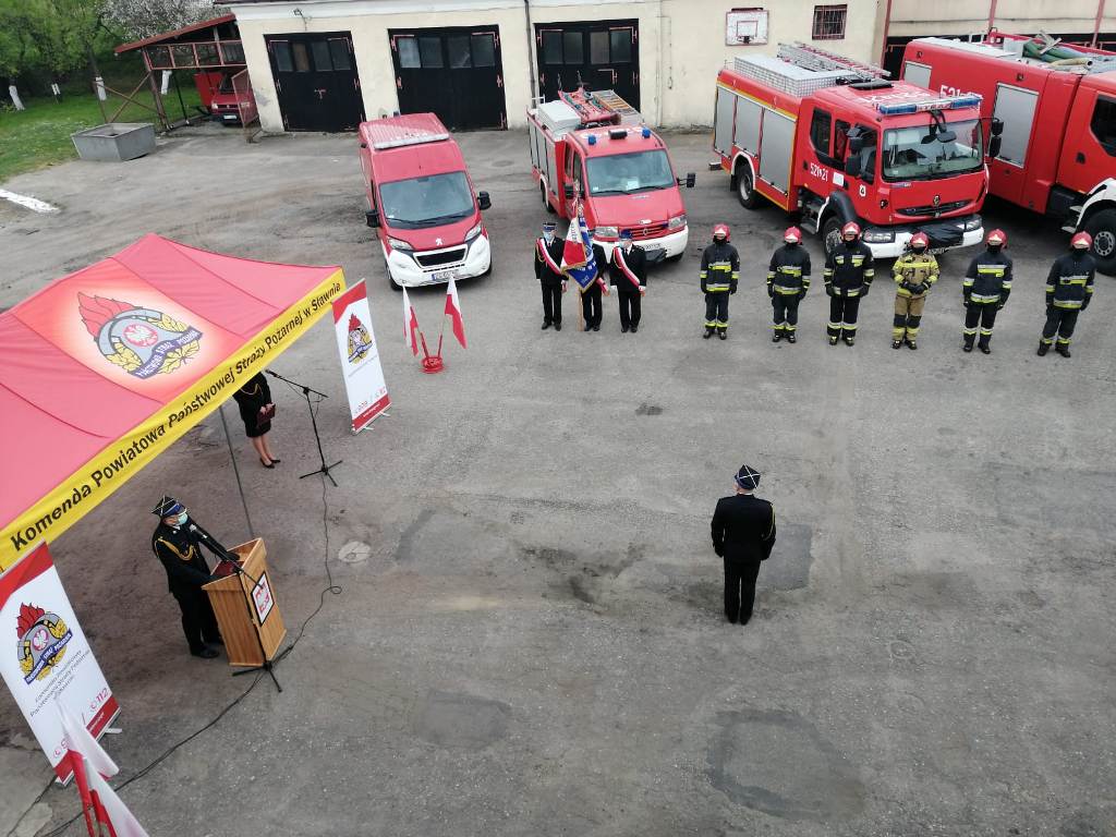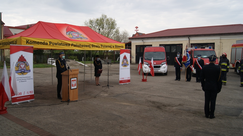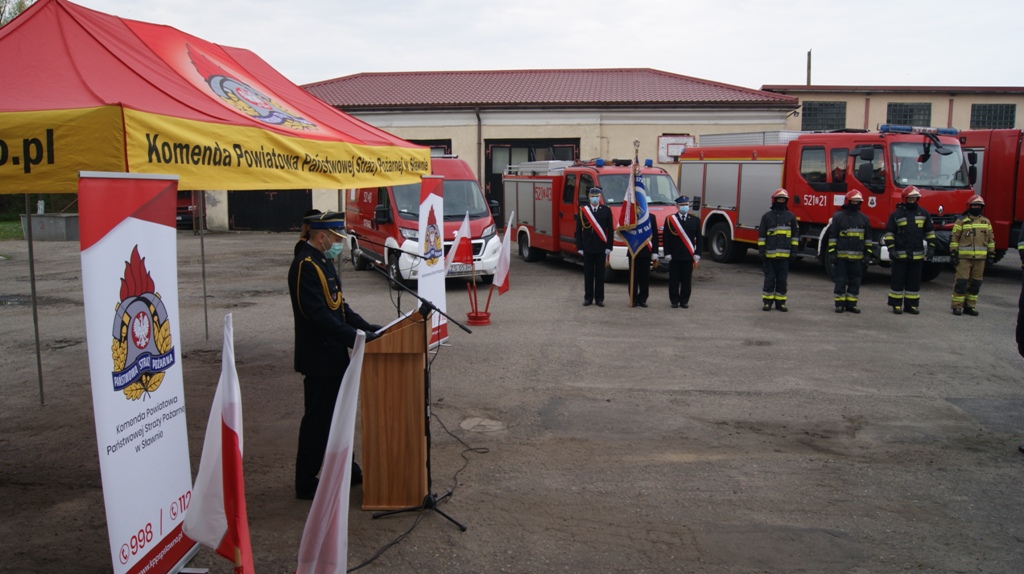 4 maja 2020 roku na placu wewnętrznym Komendy Powiatowej Państwowej Straży Pożarnej w Sławnie, odbył się uroczysty apel z okazji Powiatowych Obchodów Dnia Strażaka. W związku panującą sytuacją epidemiologiczną w całym kraju, uroczystość miała charakter niecodzienny. Z zachowaniem reżimu sanitarnego w apelu uczestniczyli tylko funkcjonariusze ośmiogodzinni, strażacy zmiany służbowej pełniący służbę oraz pracownicy cywilni Komendy . Uroczysty apel rozpoczął się od złożenia meldunku przez dowódcę uroczystości kpt. Damiana Tomczyka Komendantowi Powiatowemu Państwowej Straży Pożarnej w Sławnie mł. bryg. Pawłowi Faryno.