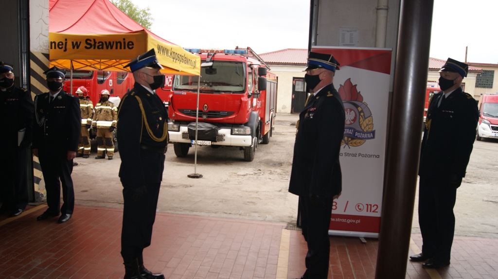 25 maja 2021 roku na placu wewnętrznym Komendy Powiatowej Państwowej Straży Pożarnej w Sławnie, odbył się uroczysty apel z okazji Powiatowych Obchodów Dnia Strażaka. W związku z panującą sytuacją epidemiczną COVID-19 w całym kraju, uroczystość odbyła się z zachowaniem reżimu sanitarnego.
