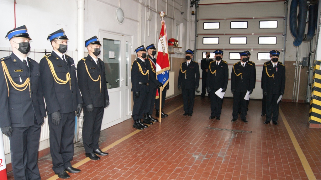 Z okazji strażackiego święta zostały odczytane komunikaty personalne funkcjonariuszy awansowanych na wyższe stopnie służbowe oraz odznaczenia.
