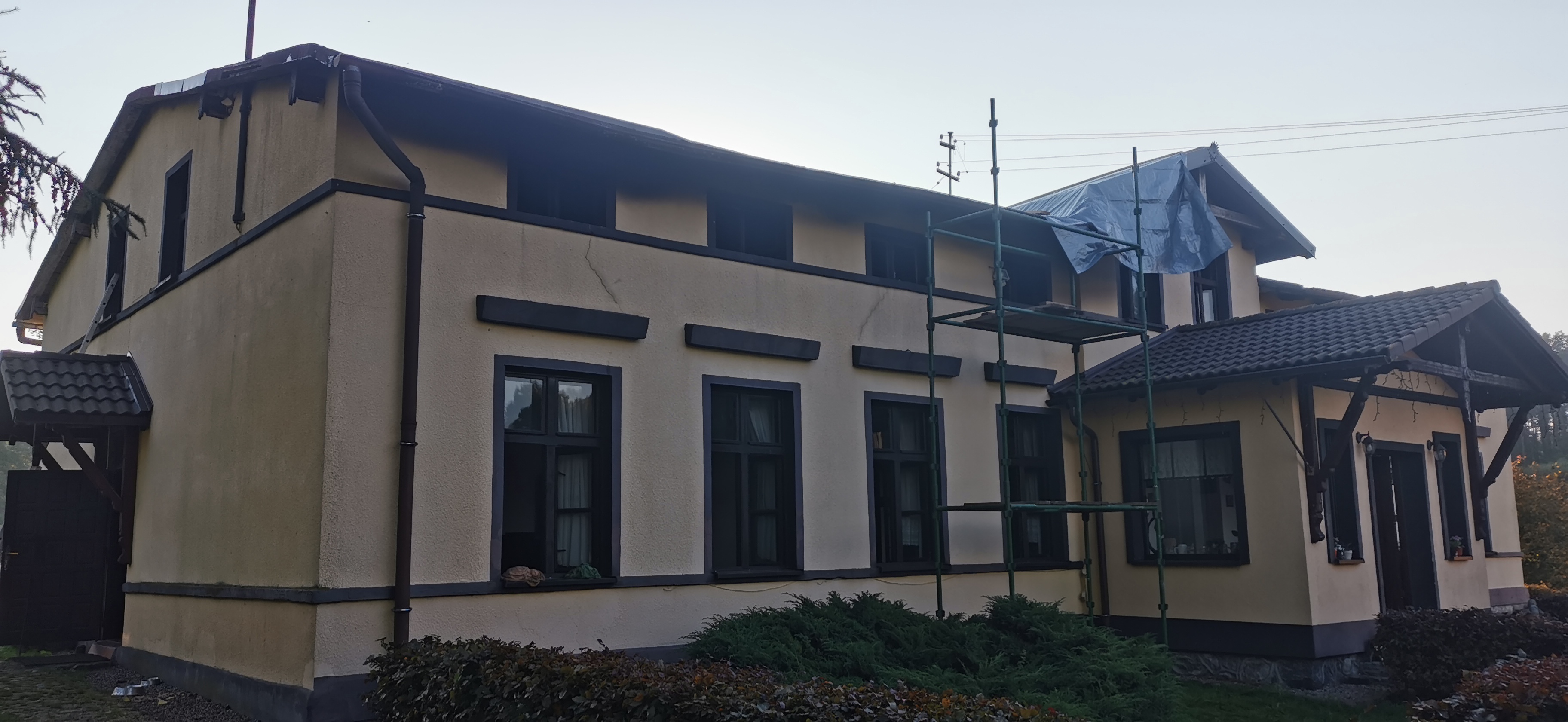 Z chwilą przybycia na miejsce zdarzenia pierwszych zastępów straży pożarnej stwierdzono wydobywający się ogień oraz duże ilości dymu z otworów okiennych znajdujących się w górnej kondygnacji budynku. Zabezpieczono miejsce zdarzenia. Strażacy w aparatach ochrony układu oddechowego przystąpili do podawania środka gaśniczego wody w natarciu na palące się elementy konstrukcyjne dachu. Jednocześnie z działaniami gaśniczymi prowadzono oddymianie i sprawdzanie pomieszczeń w budynku. W chwili powstania pożaru w budynku przebywały trzy osoby, które przed przybyciem na miejsce zdarzenia pierwszych zastępów ewakuowały się na zewnątrz. W wyniku powstania pożaru spaleniu uległa częściowo konstrukcja dachowa, ściany działowe, podłoga oraz konstrukcja sufitowa. Brak osób poszkodowanych.