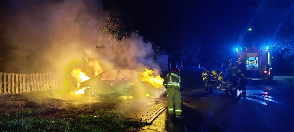 Z chwilą przybycia na miejsce zdarzenia pierwszych zastępów stwierdzono pożar samochodu osobowego, który objęty był w całości pożarem. Zabezpieczono miejsce zdarzenia, strażacy podali środek gaśniczy piany w natarciu na palące się auto po czym pożar ugaszono. Po ugaszeniu pożaru w pojeździe nie stwierdzono osób poszkodowanych.