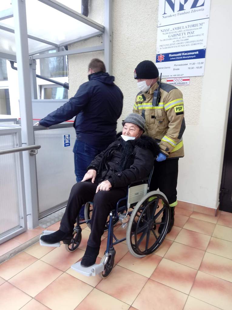 W dniu 26 stycznia br., taka pomoc została udzielona mieszkance Darłowa, transport do punktu szczepień odbył się samochodem UM Darłowo. Funkcjonariusze KP PSP w Sławnie z Posterunku w Darłowie pomogli przy wniesieniu do auta seniorki, dojazdu do punktu szczepień i po szczepieniu do miejsca zamieszkania.