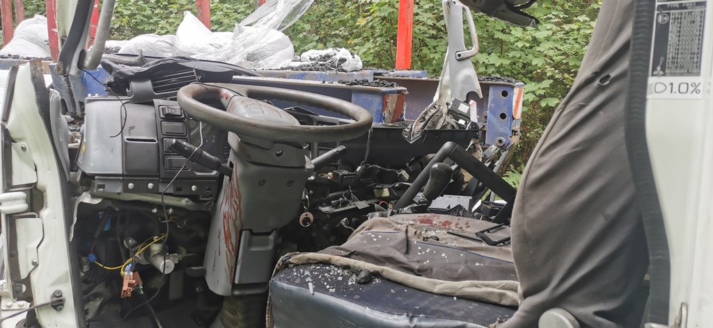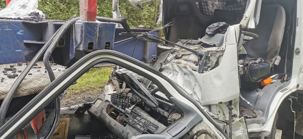 Z chwilą przybycia na miejsce zdarzenia pierwszych zastępów stwierdzono zderzenie samochodu dostawczego przewożącego materiał opałowy w tył przyczepy samochodu ciężarowego oraz samochód osobowy znajdujący się w przydrożnym rowie. Zabezpieczono miejsce zdarzenia. W zdarzeniu brało udział pięć osób. W pojeździe dostawczym znajdowały się dwie osoby zakleszczone w kabinie, które strażacy przy użyciu urządzeń hydraulicznych ewakuowali na zewnątrz. Poszkodowani zostali przekazani przybyłym na miejsce Zespołom Ratownictwa Medycznego następnie. Po przebadaniu kierujący oraz pasażer zostali przetransportowani przez ZRM oraz Lotnicze Pogotowie Ratunkowe do szpitala.