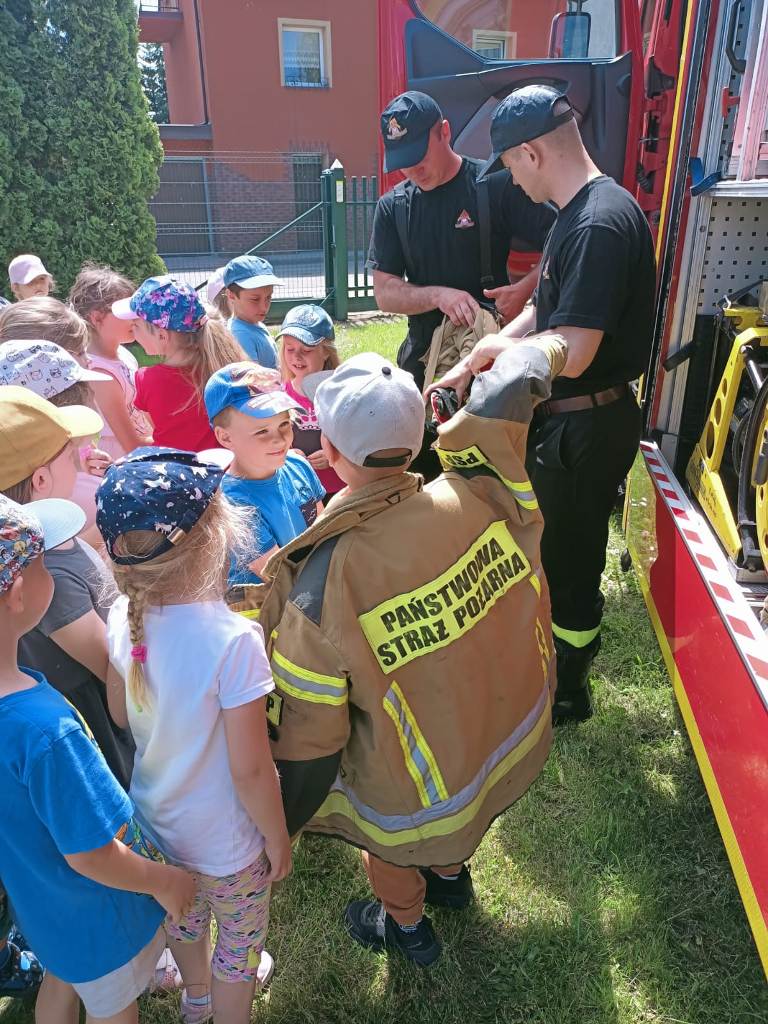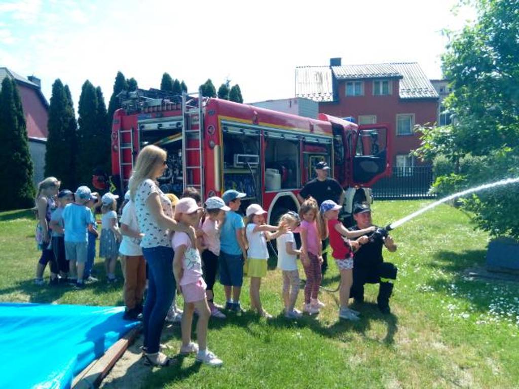W dniu 08 czerwca 2021r., funkcjonariusze Komendy Powiatowej Państwowej Straży Pożarnej w Sławnie z Posterunku PSP Darłowo, odwiedzili dzieci Przedszkola nr 2 w Darłowie. Podczas spotkania strażacy przedstawili charakterystykę służby, zaprezentowali sprzęt będący na wyposażeniu samochodu bojowego oraz przekazali kilka cennych wskazówek dotyczących bezpiecznego zachowania się w okresie letnich wakacji.