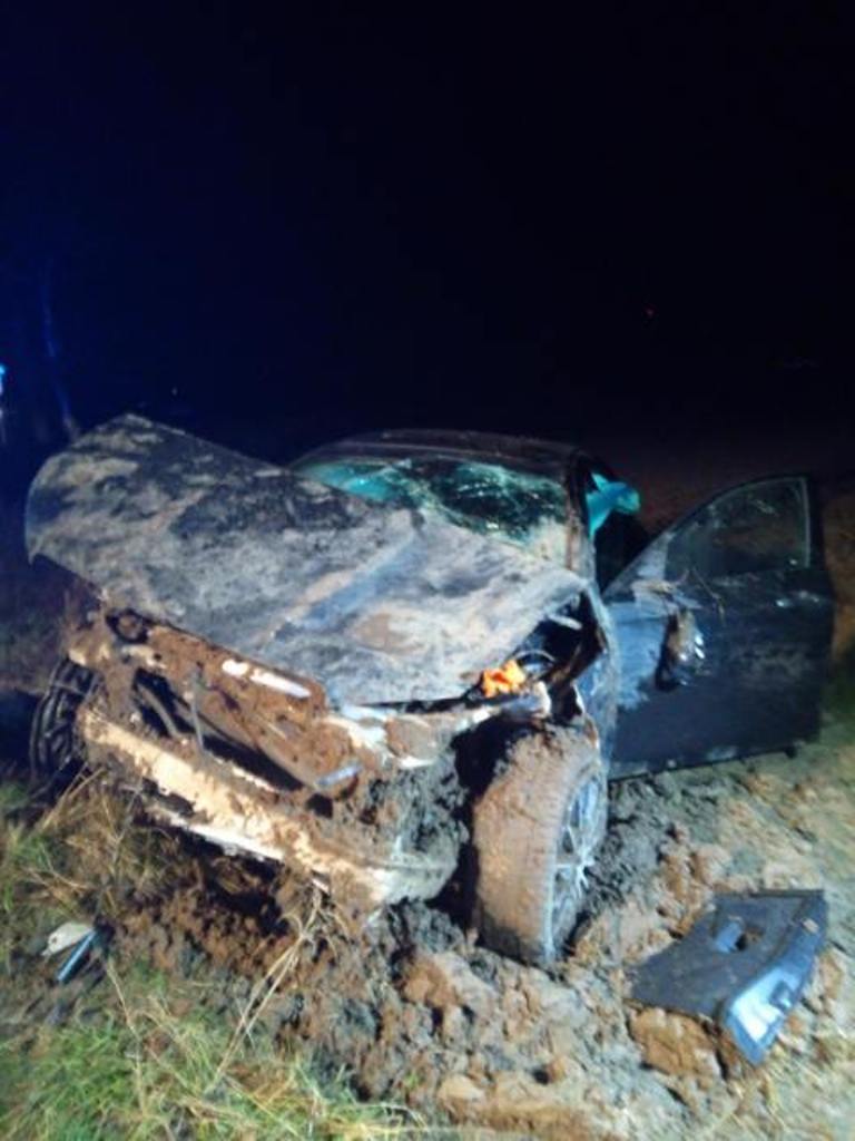 Z chwilą przybycia na miejsce zdarzenia pierwszych zastępów stwierdzono samochód osobowy marki Mercedes znajdujący się poza pasem ruchu drogowego, który uderzył w przepust i wypadł w pole. Pojazdem podróżowały dwie osoby mężczyzna i kobieta. Zabezpieczono miejsce zdarzenia. Strażacy przy pomocy narzędzi hydraulicznych ewakuowali kierującego pojazdem na zewnątrz i przekazali Zespołowi Ratownictwa Medycznego.