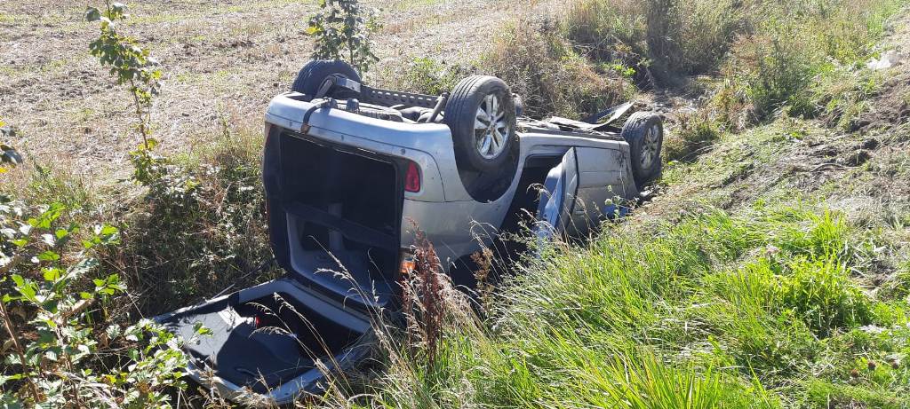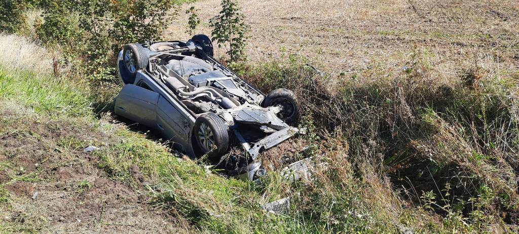 Z chwilą przybycia na miejsce zdarzenia pierwszych zastępów stwierdzono dachowanie samochodu osobowego marki Renault znajdującego się w przydrożnym rowie. Zabezpieczono miejsce zdarzenia. W zdarzeniu brała udział jedna osoba mężczyzna kierujący pojazdem, który przed przybyciem zastępów sam wydostał się z pojazdu. Poszkodowanemu strażacy udzielili kwalifikowanej pomocy przedmedycznej następnie osoba poszkodowana została przekazana przybyłemu na miejsce zdarzenia Zespołowi Ratownictwa Medycznego. Po przebadaniu osoba poszkodowana przez ZRM nie wymagała dalszej hospitalizacji.