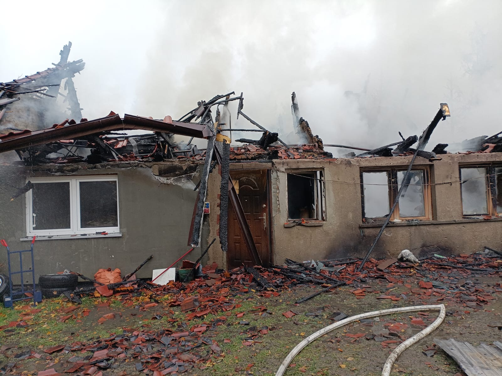 02. 11. 2025r., o godzinie 08:47 dyżurny Stanowiska Kierowania Komendanta Powiatowego w Sławnie otrzymał zgłoszenie o pożarze budynku mieszkalnego w miejscowości Zagórzyn. Do działań zostały zadysponowane zastępy z Posterunku Państwowej Straży Pożarnej w Darłowie oraz zastępy OSP Domasławice, OSP Słowino, OSP Krupy i OSP Stary Jarosław.