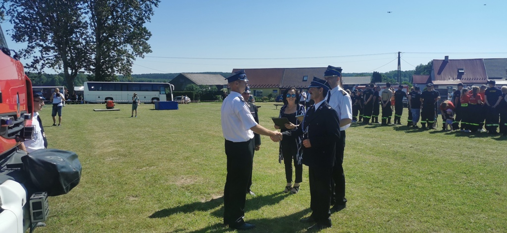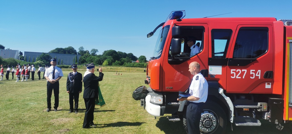Zawody Sportowo-Pożarnicze OSP Gminy Sławno oraz wręczenie aktu użyczenia średniego samochodu ratowniczo-gaśniczego Renault Midlum dla Ochotniczej Straży Pożarnej w Starym Krakowie