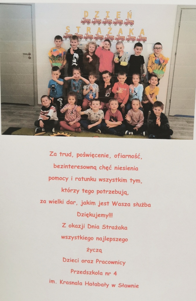 W dniu 04 maja 2021 roku, strażaków Komendy Powiatowej Państwowej Straży Pożarnej w Sławnie odwiedziła grupa młodzieży „AKSON” terapii zajęciowej w Sławnie, grupa przedszkolna Specjalnego Ośrodka Szkolno-Wychowawczego dla Dzieci i Młodzieży Niepełnosprawnej w Sławnie oraz przedstawiciel przedszkola nr 4 im. Krasnala Hałabały w Sławnie. Funkcjonariusze z okazji Międzynarodowego Dnia Strażaka otrzymali słodkości oraz najserdeczniejsze życzenia w dniu święta.