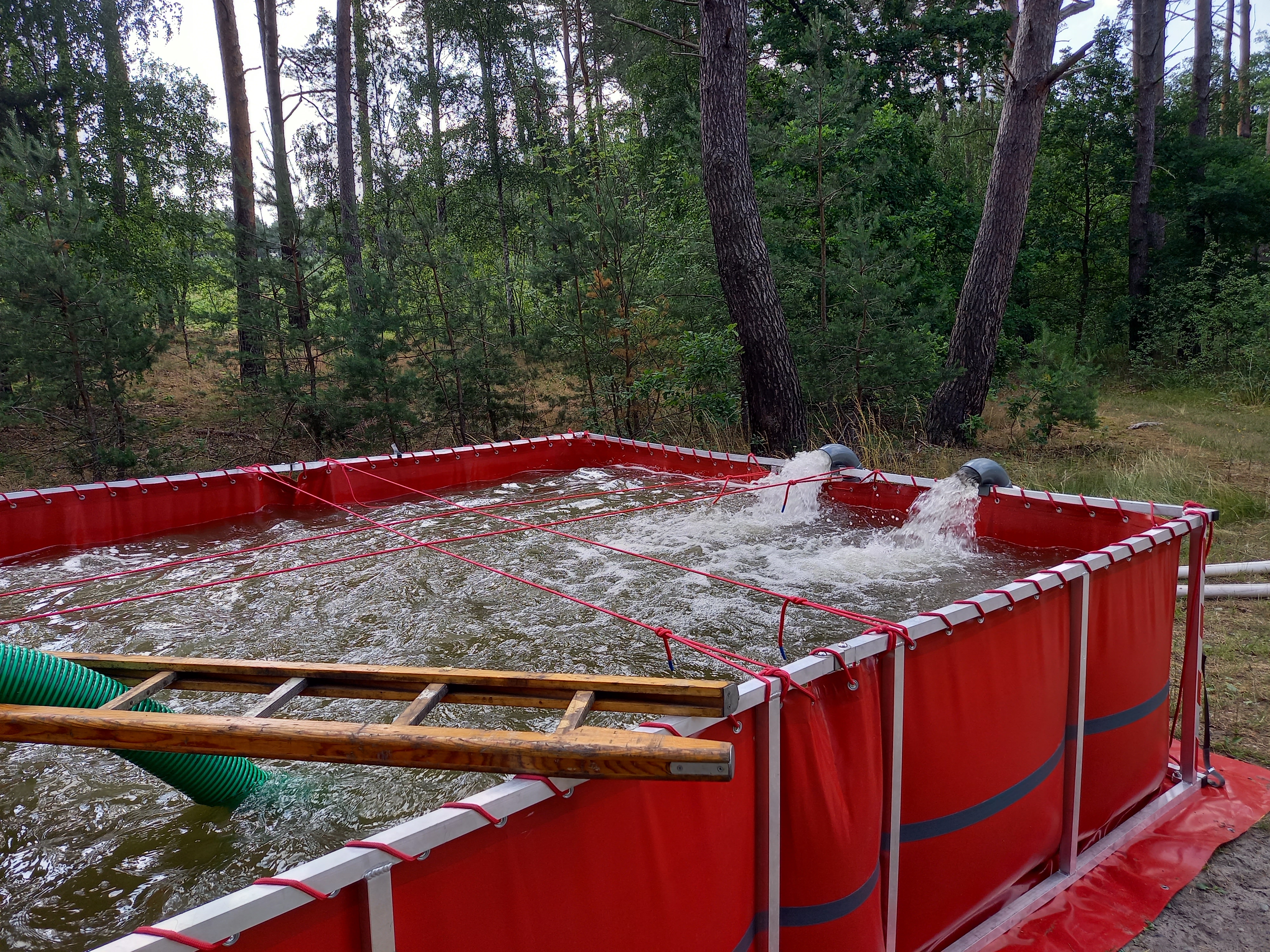 - zapewnieniu ciągłości podawania środków gaśniczych poprzez organizację systemu zaopatrzenia w wodę metodą przetłaczania lub przepompowywania ze zbiornika przenośnego (bufor wodny) o pojemności 13 000 dm3 do stanowisk gaśniczych;
