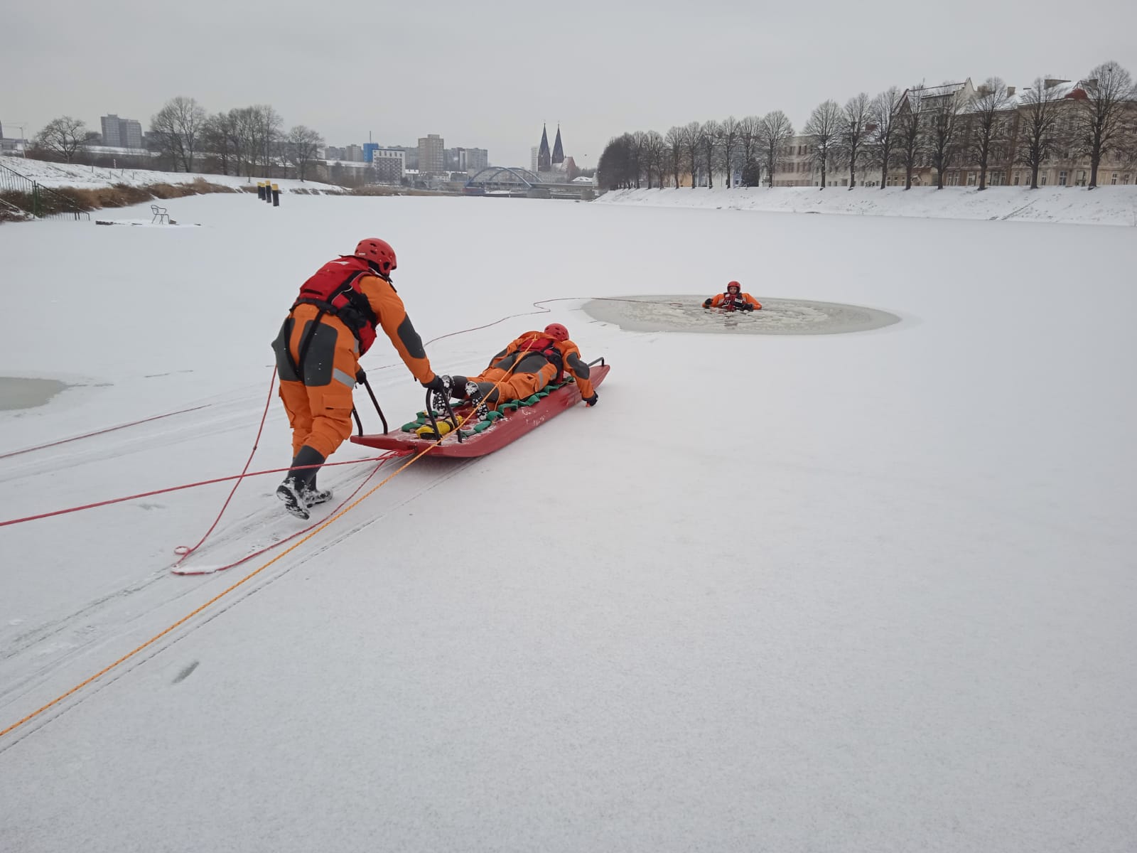 Ćwiczenia ratownicze na akwenach zalodzonych