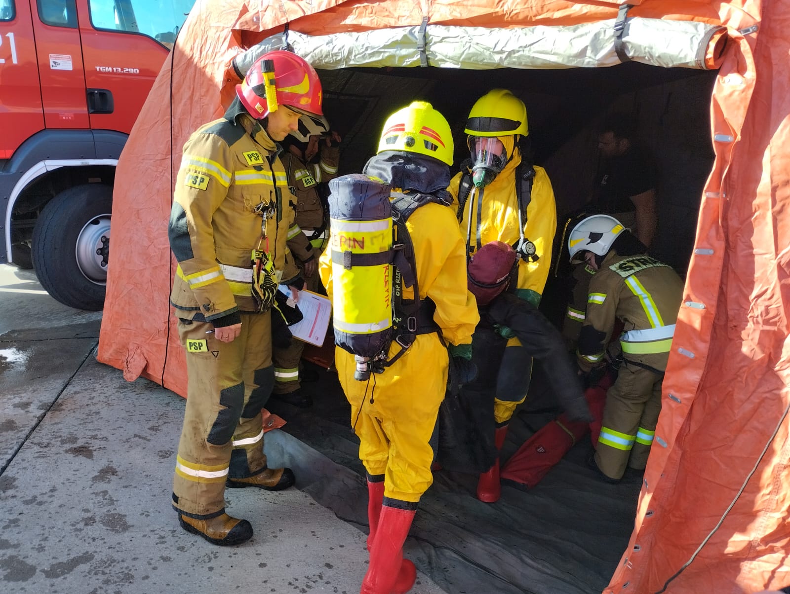- Doskonalenie umiejętności reagowania jednostek PSP i OSP na zdarzenia powstałe w transporcie materiałów niebezpiecznych, zdarzenia powstałe na drogach oraz w przypadku powstania pożaru w budynku administracyjno-biurowym,
