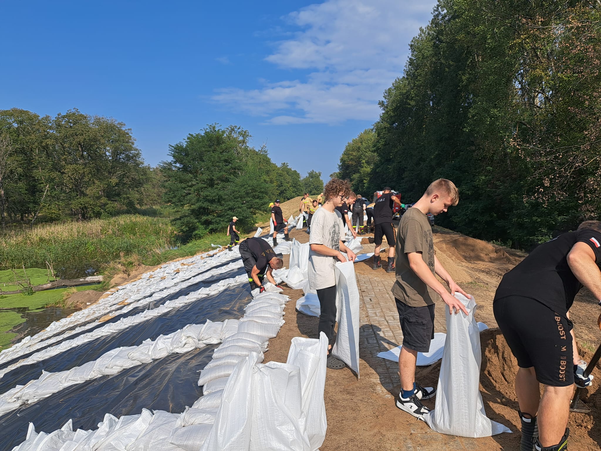 W pracach przygotowawczych polegających na napełnianiu worków, umocnieniu wału i wielu inych zadań zaangażowani byli również mieszkańcy pobliskich miejscowości, wolontariusze, żołnierze i pracownicy samorządowi. Wszyscy stworzyli zespół, który walczy o bezpieczeństwo naszych domów i mienia. Dziękujemy za Wasze wsparcie i poświęcenie!
