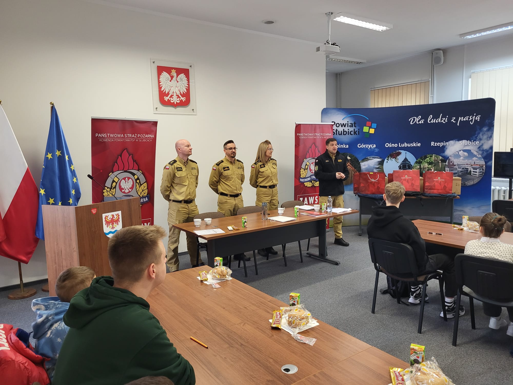 14 kwietnia 2026 roku, w sali konferencyjnej Starostwa Powiatowego w Słubicach odbyły się powiatowe eliminacje Ogólnopolskiego Turnieju Wiedzy Pożarniczej „Młodzież Zapobiega Pożarom”. Turniej składał się z dwóch części tj. pisemnej w formie testu, a następnie z części ustnej dla trzech najlepszych uczestników wyłonionych z części pisemnej w każdej grupie wiekowej.