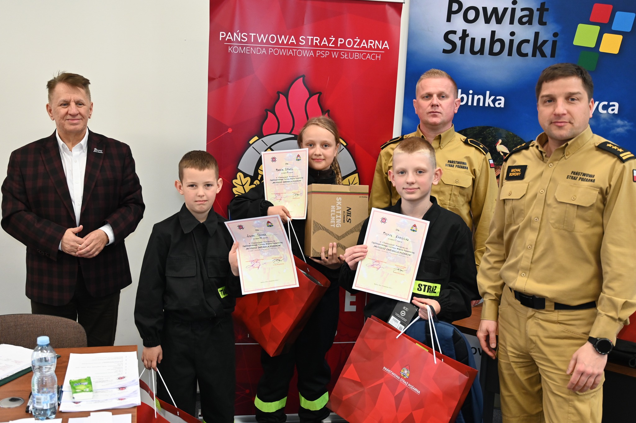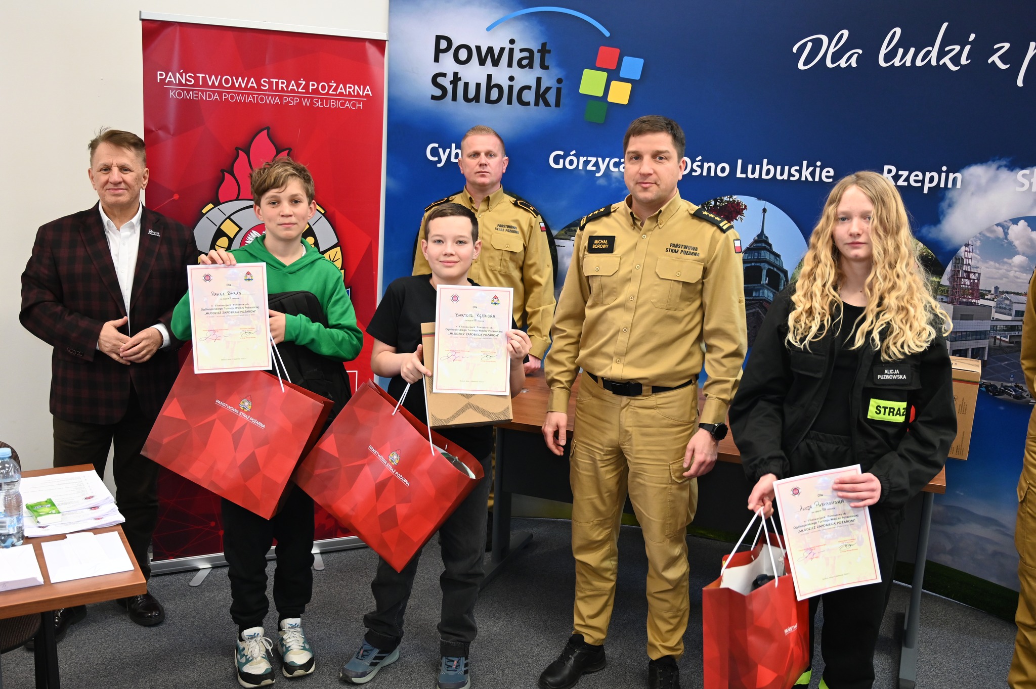 Nagrody wręczyli organizatorzy turnieju - Komendant Powiatowy PSP w Słubicach - st. bryg. Michał Borowy oraz Starosta Powiatu - Prezes Zarządu Powiatowego OSP RP w Słubicach - Leszek Bajon. Uczniowie, którzy zajęli dwa pierwsze miejsca w swoich kategoriach wiekowych będą reprezentować powiat słubicki w wojewódzkich eliminacjach OTWP, które odbędą się w Żaganiu.