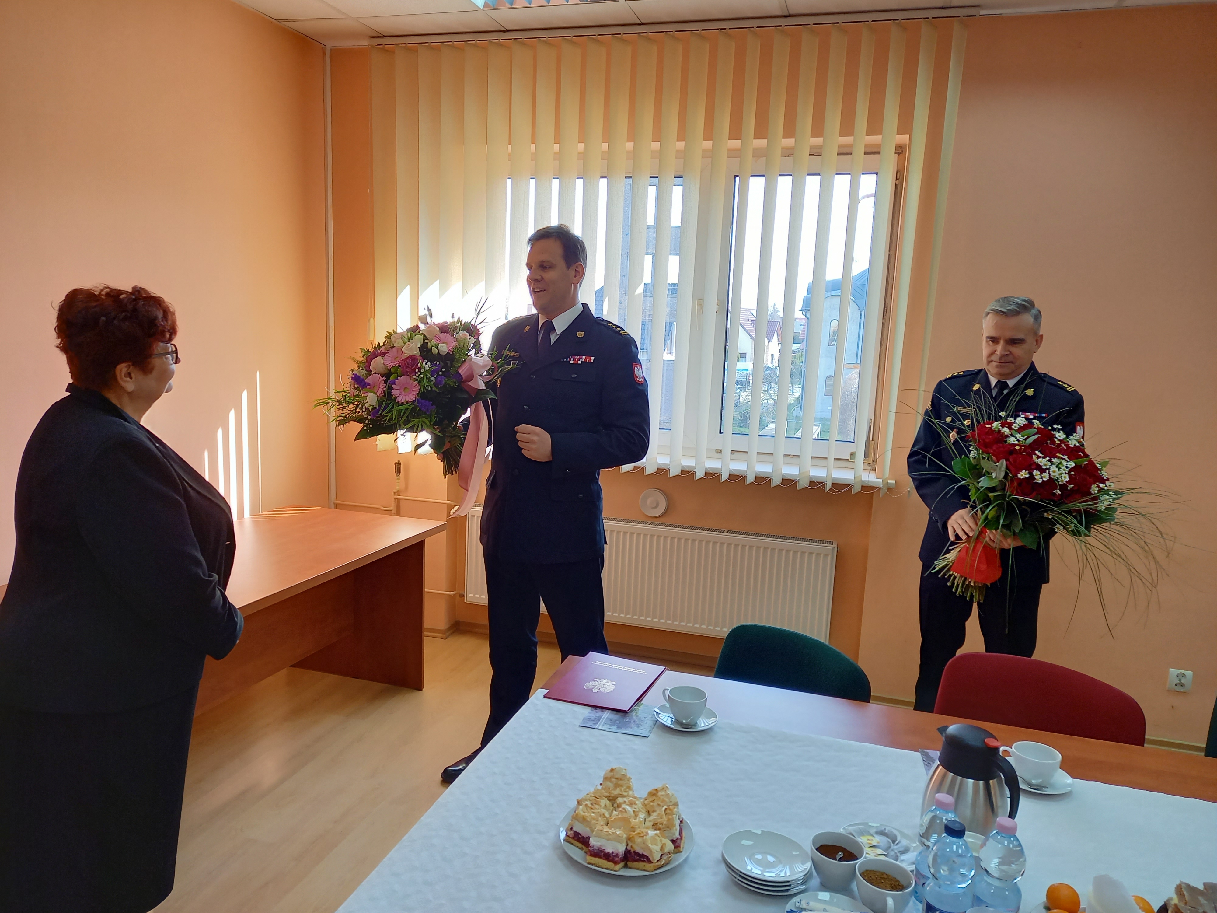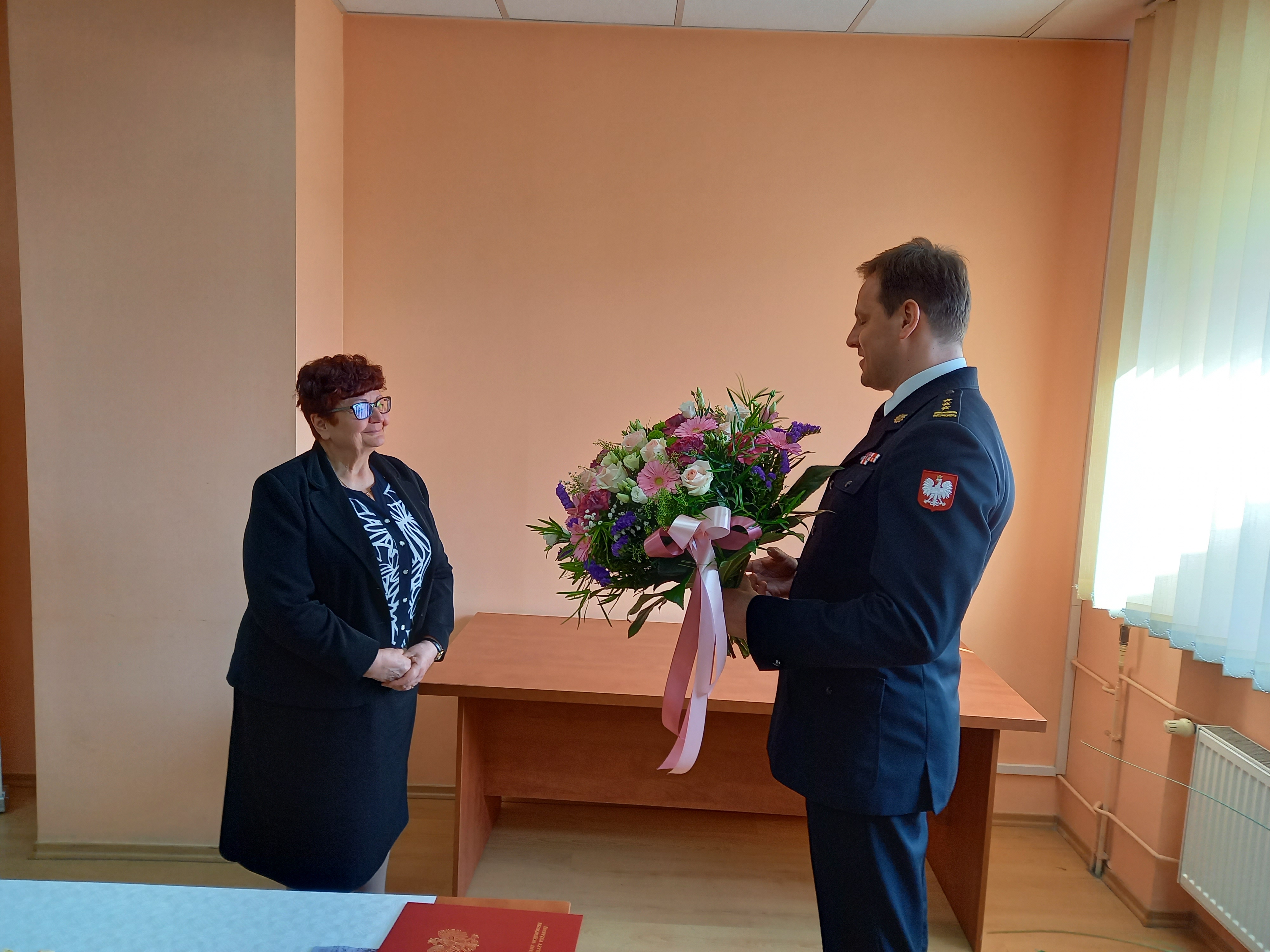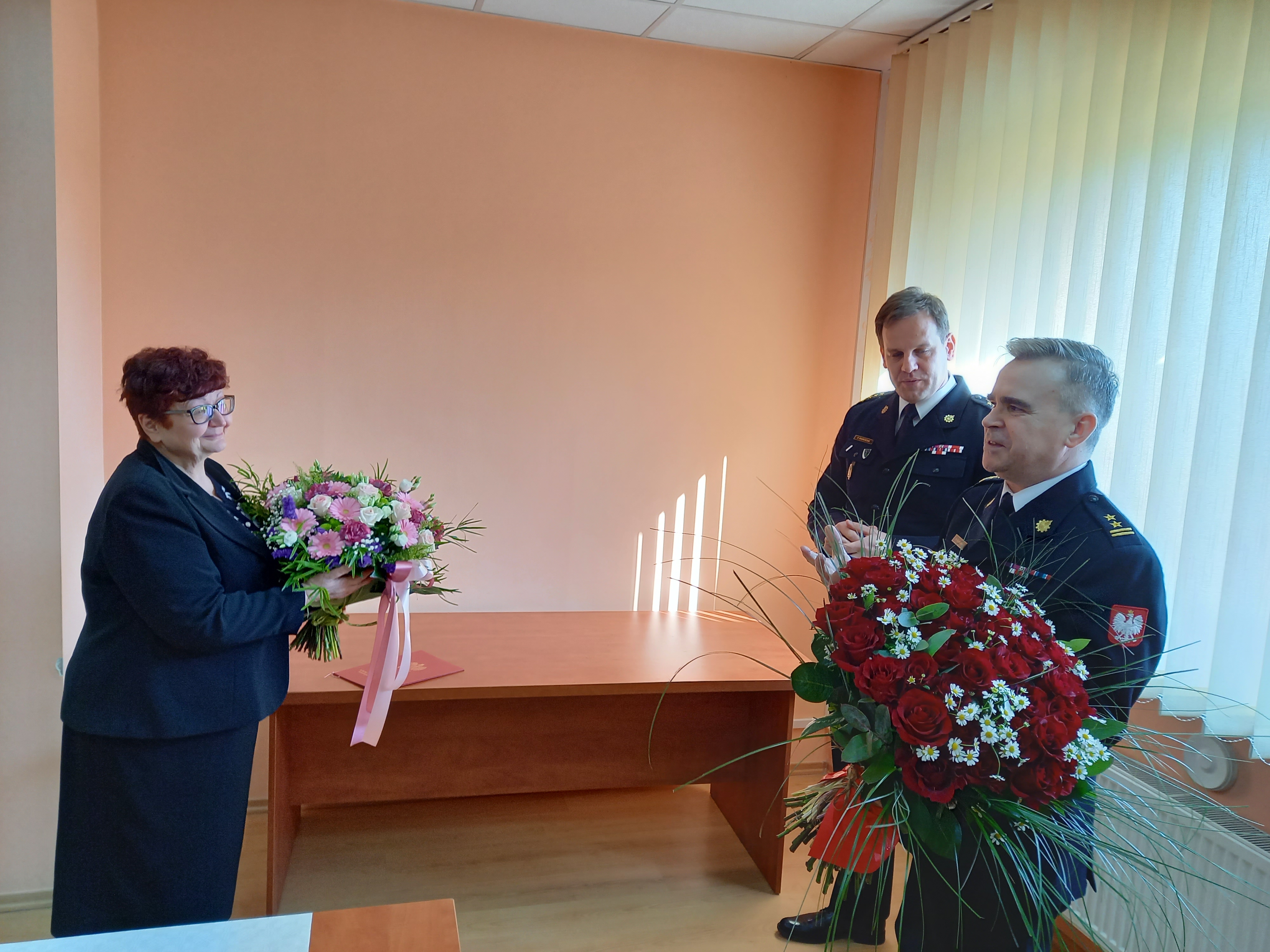 Swój podziw dla nadzwyczajnej wytrwałości w realizacji obowiązków zawodowych oraz życzenia wszelkiej pomyślności osobiście złożyli jubilatce Lubuski Komendant Wojewódzki Państwowej Straży Pożarnej w Gorzowie Wlkp. st. bryg. Patryk Maruszak oraz Komendant Powiatowy Państwowej Straży Pożarnej w Słubicach bryg. Wojciech Śliwiński wraz z funkcjonariuszami i pracownikami Komendy.