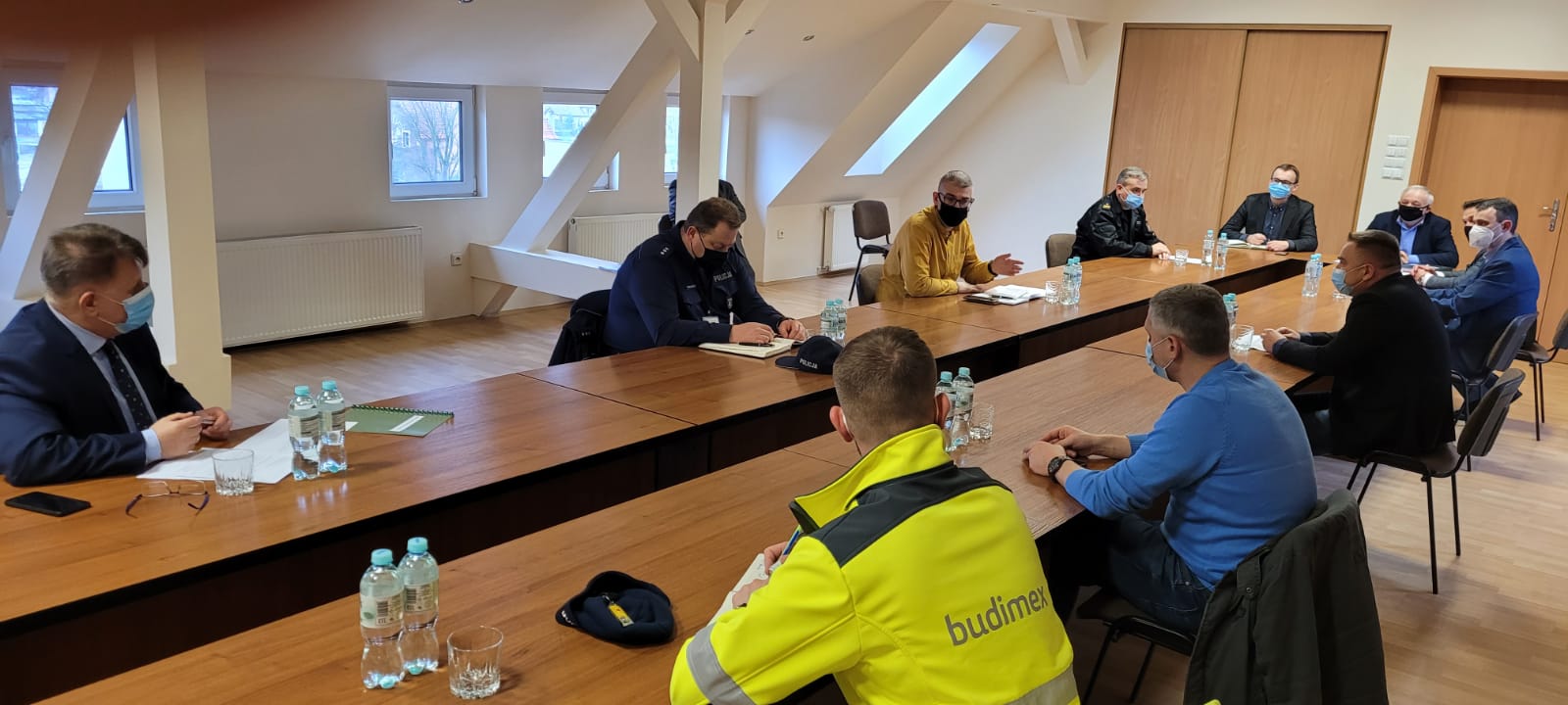 Komendant Powiatowy Państwowej Straży Pożarnej w Słubicach mł. bryg. Wojciech Śliwiński uczestniczył w zwołanym w dniu 17 lutego 2021 r. posiedzeniu Powiatowego Zespołu Zarządzania Kryzysowego. Posiedzenie zwołał Starosta Słubicki Leszek Bajon. W spotkaniu uczestniczyli również Burmistrzowie i Wójt z gmin zagrożonych powodzią, Zastępca Komendanta Powiatowego Policji w Słubicach, pracownicy Biura Zarządzania Kryzysowego Starostwa Powiatowego, przedstawiciel Państwowego Gospodarstwa Wodnego Wody Polskie Nadzór Wodny w Słubicach oraz przedstawiciele firmy Budimex - realizującej obecnie inwestycję w zakresie budowy i przebudowy wałów przeciwpowodziowych w Słubicach.