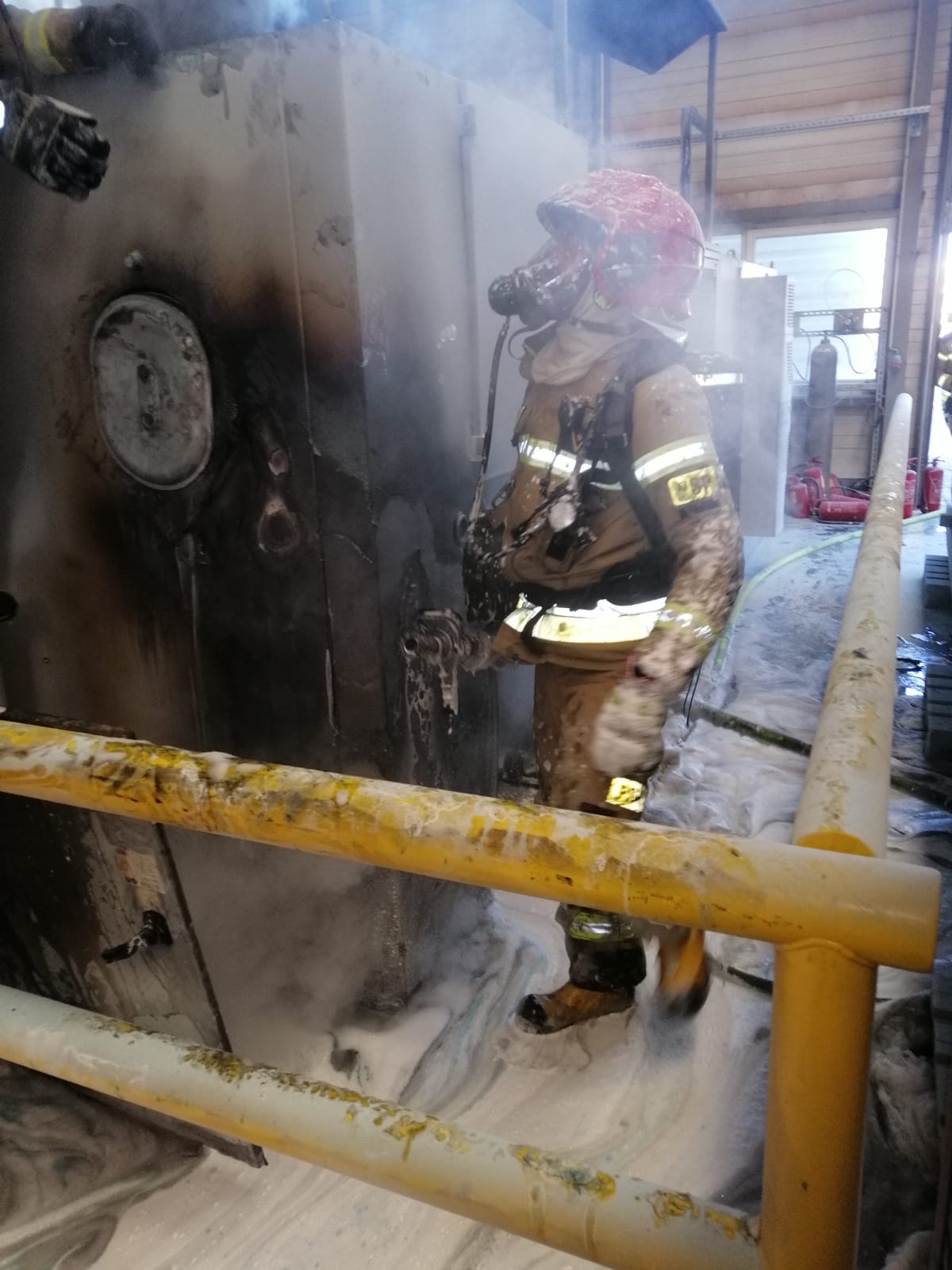 Pożar maszyny w zakładzie produkcyjnym