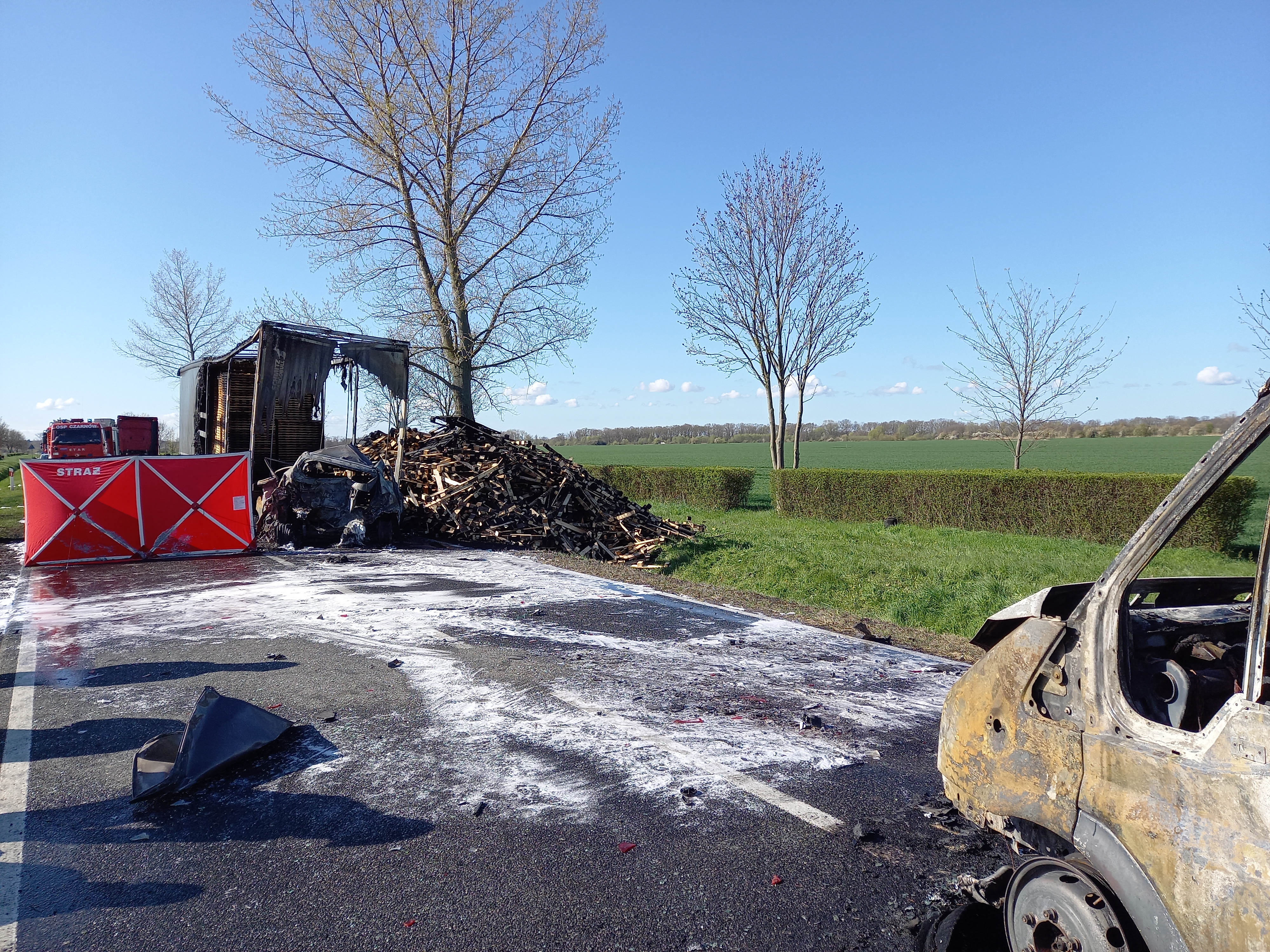 W godzinach porannych 26 kwietnia br. na drodze krajowej nr 31 w okolicy miejscowości Górzyca doszło do tragicznego w skutkach zderzenia trzech pojazdów. Samochód osobowy uderzył w tył naczepy samochodu ciężarowego i sam został dodatkowo uderzony przez kolejny jadący za nim pojazd dostawczy. Po zderzeniu pojazdy stanęły w płomieniach.