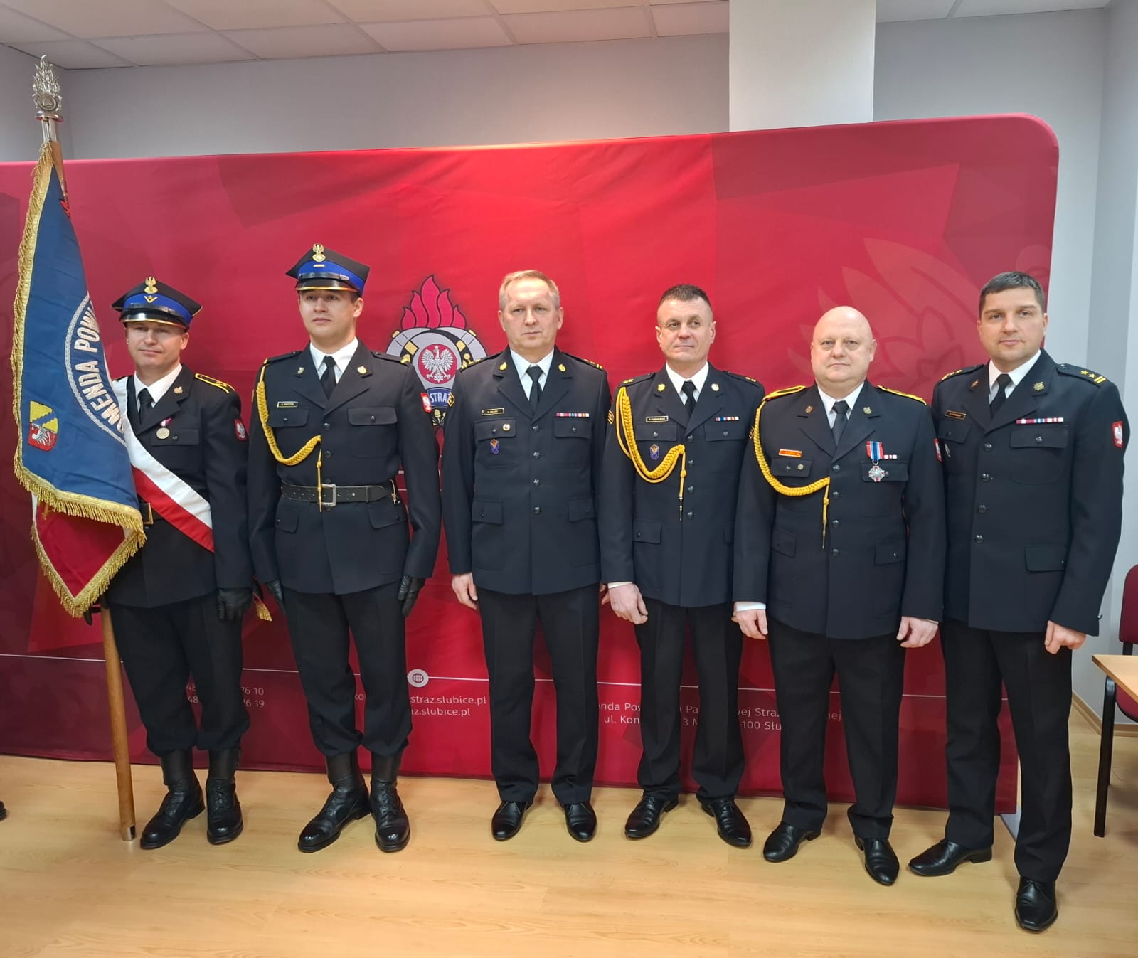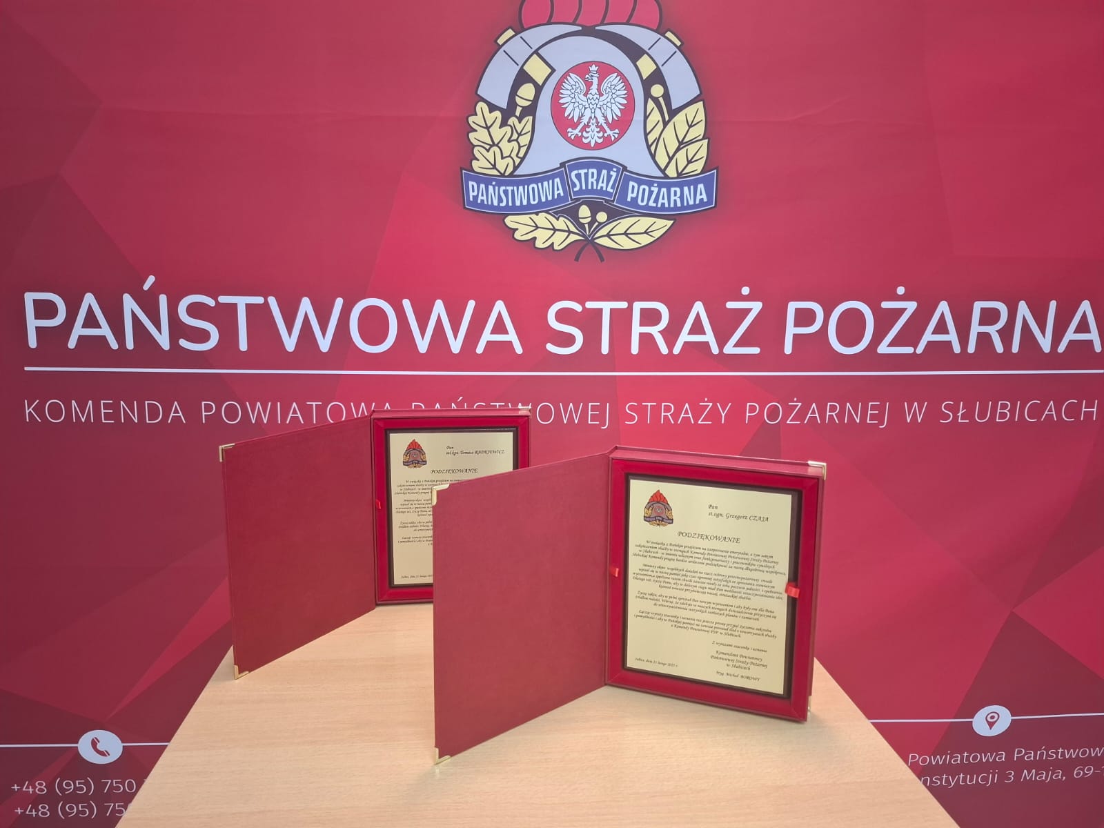 Komendant Powiatowy PSP w Słubicach bryg. Michał Borowy złożył Tomaszowi i Grzegorzowi podziękowania za długoletnią służbę, zaangażowanie w życie komendy i wkład włożony w zapewnienie bezpieczeństwa mieszkańcom powiatu słubickiego.