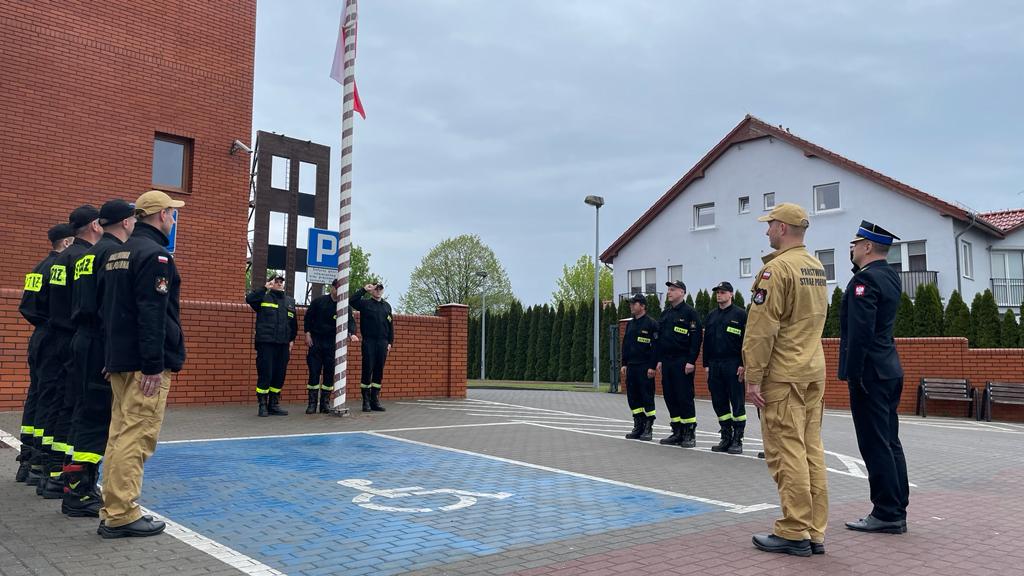 W dniu 2 maja 2023 roku o godzinie 8 00 w Komendzie Powiatowej Państwowej Straży Pożarnej w Słupcy odbyła się uroczysta zmiana służby z okazji Dnia Flagi Rzeczypospolitej Polskiej, w której wzięli udział: Zastępca Komendanta Powiatowego PSP w Słupcy st. kpt. Robert Brzymyszkiewicz, Dowódca Jednostki – Ratowniczo Gaśniczej mł. bryg. Mariusz Pawela oraz funkcjonariusze zmian służbowych.