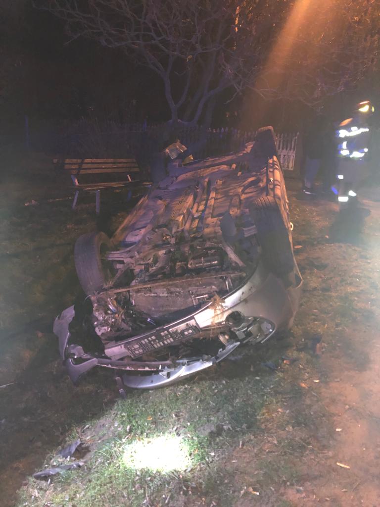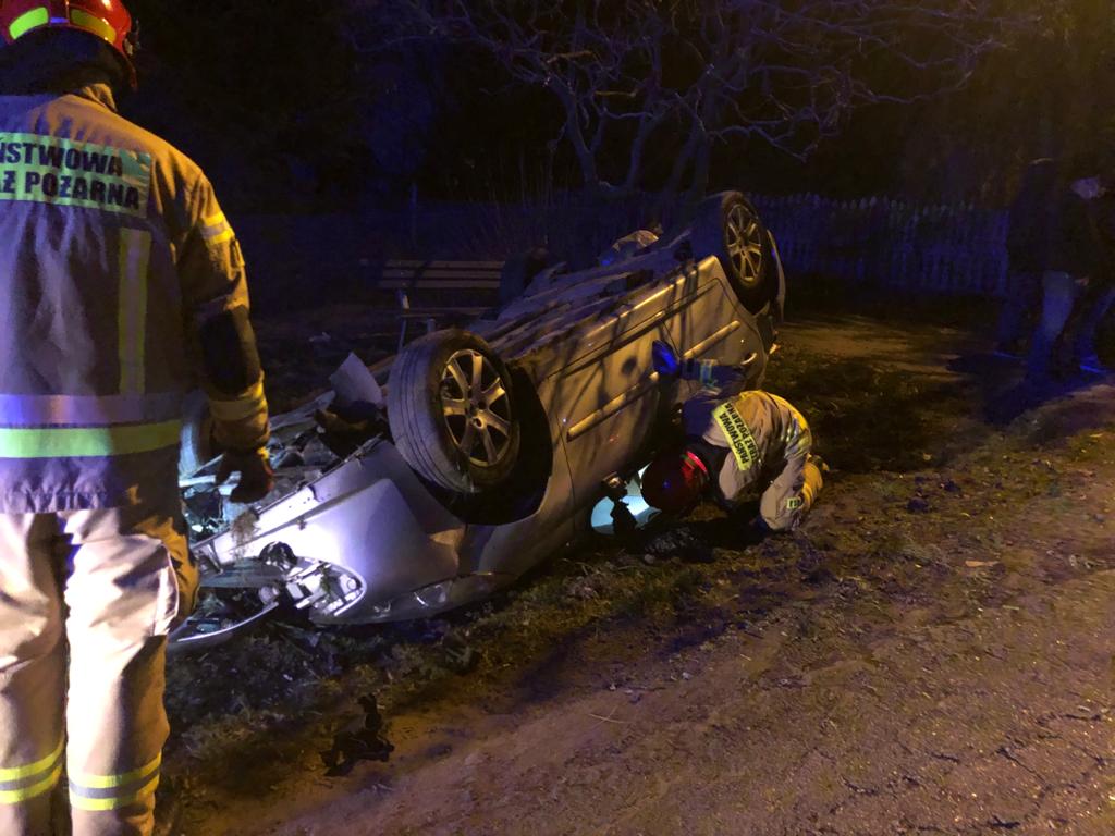 Drugie zdarzenie miało miejsce o godz. 23.41 w m.ci. Kąty gm. Słupca. Dyżurny SKKP odebrał zghłoszenie o samochodzie osobowym który wyleciał z drogi i dachował. Po dojeździe strażacy zastali samochód leżący na dachu. Nie było w nim żadnych osób. Z relacji świadków wynikało, że kierujący pojazdem z niewyjaśnionych przyczyn oddalił się. Strażacy przeszukali okolicę jednak nikogo nie znaleziono. W działaniach udział brały zastepy z JRG Słupca.
