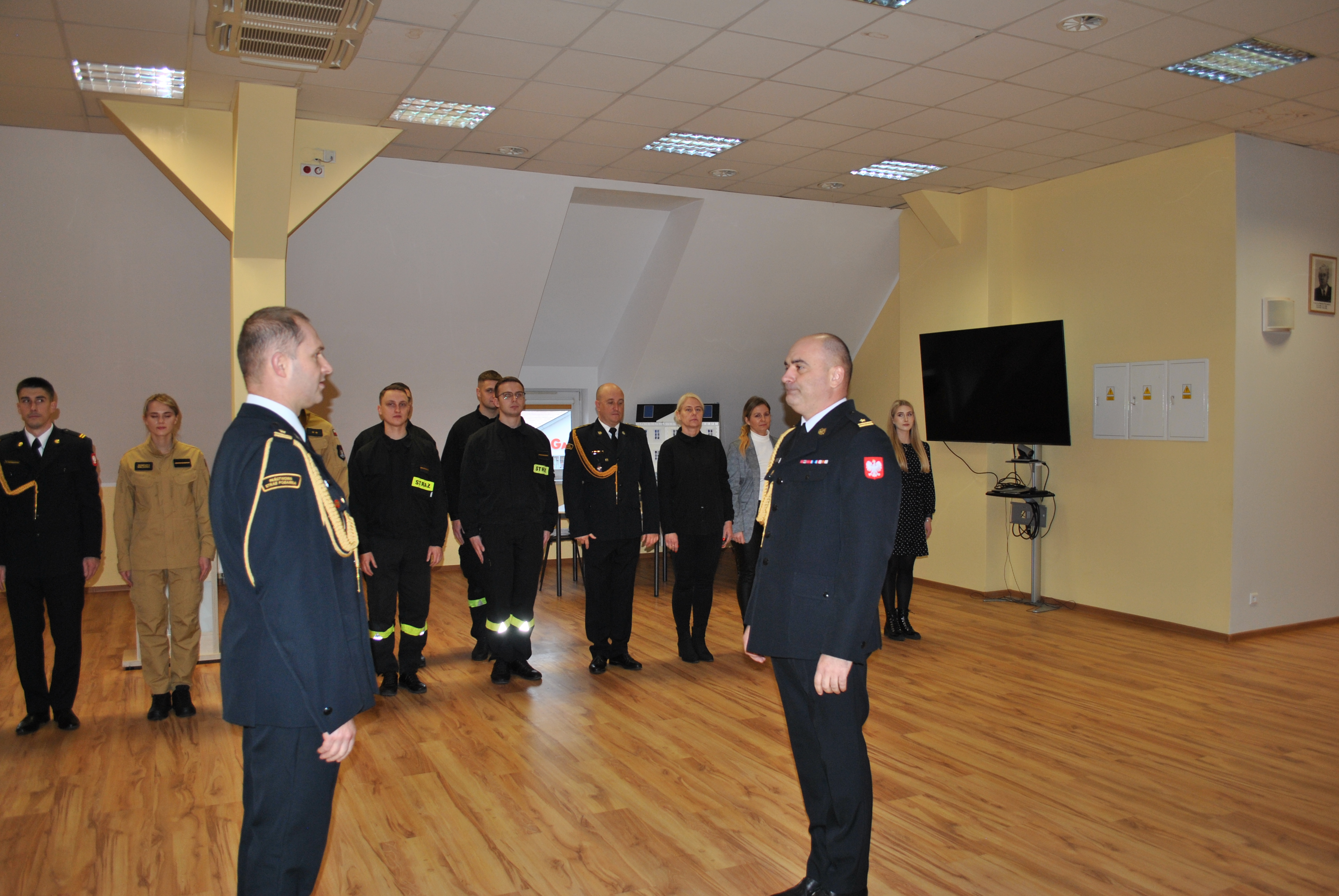 Po wygłoszeniu okolicznościowego wystąpienia, komendant wręczył strażakom akty nominacyjne na wyższe stopnie służbowe.