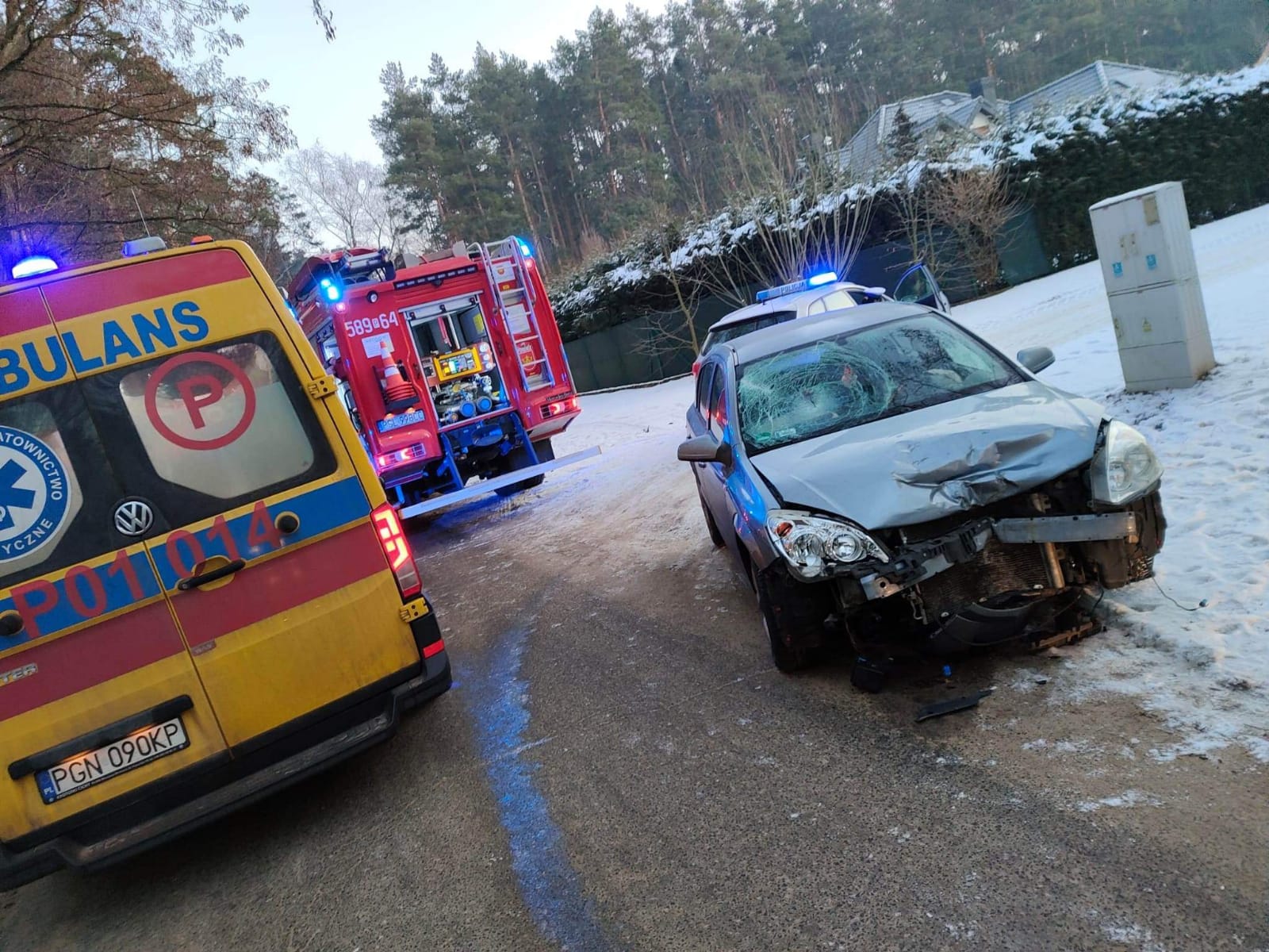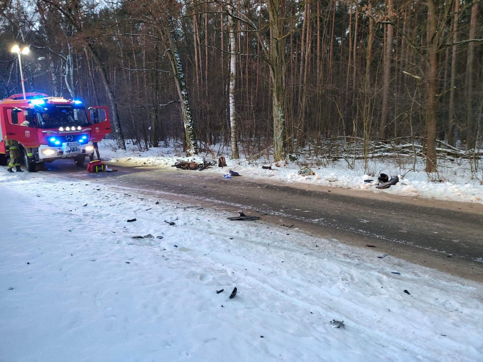 9 lutego najpierw o godz. 6:13 do Stanowiska Kierowania Komendanta Powiatowego PSP w Słupcy wpłynęło zgłoszenie o potrąceniu człowieka przez samochód osobowy w Wylatkowie gm. Powidz. Po dotarciu zastępów straży pożarnej na miejsce zdarzenia zastano rozbity samochód osobowy oraz motorower. Kierującej samochodem nic się nie stało, natomiast obrażeniom uległ kierowca motoroweru, który najpierw został opatrzony przez strażaków, a następnie przekazany zespołowi ZRM. Obrażenia motocyklisty były na tyle dotkliwe dlatego na miejsce wezwano Lotnicze Pogotowie Ratunkowe.