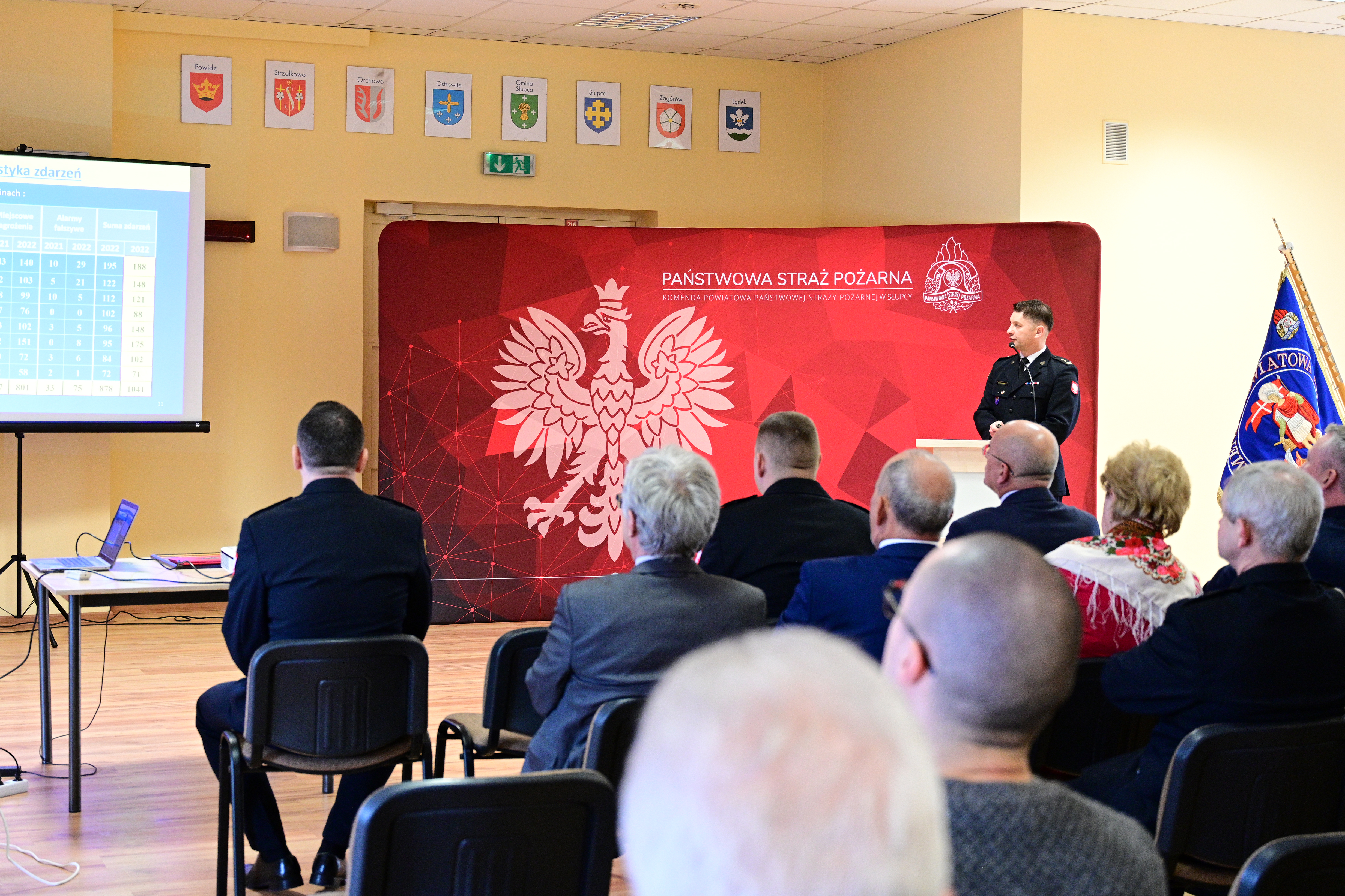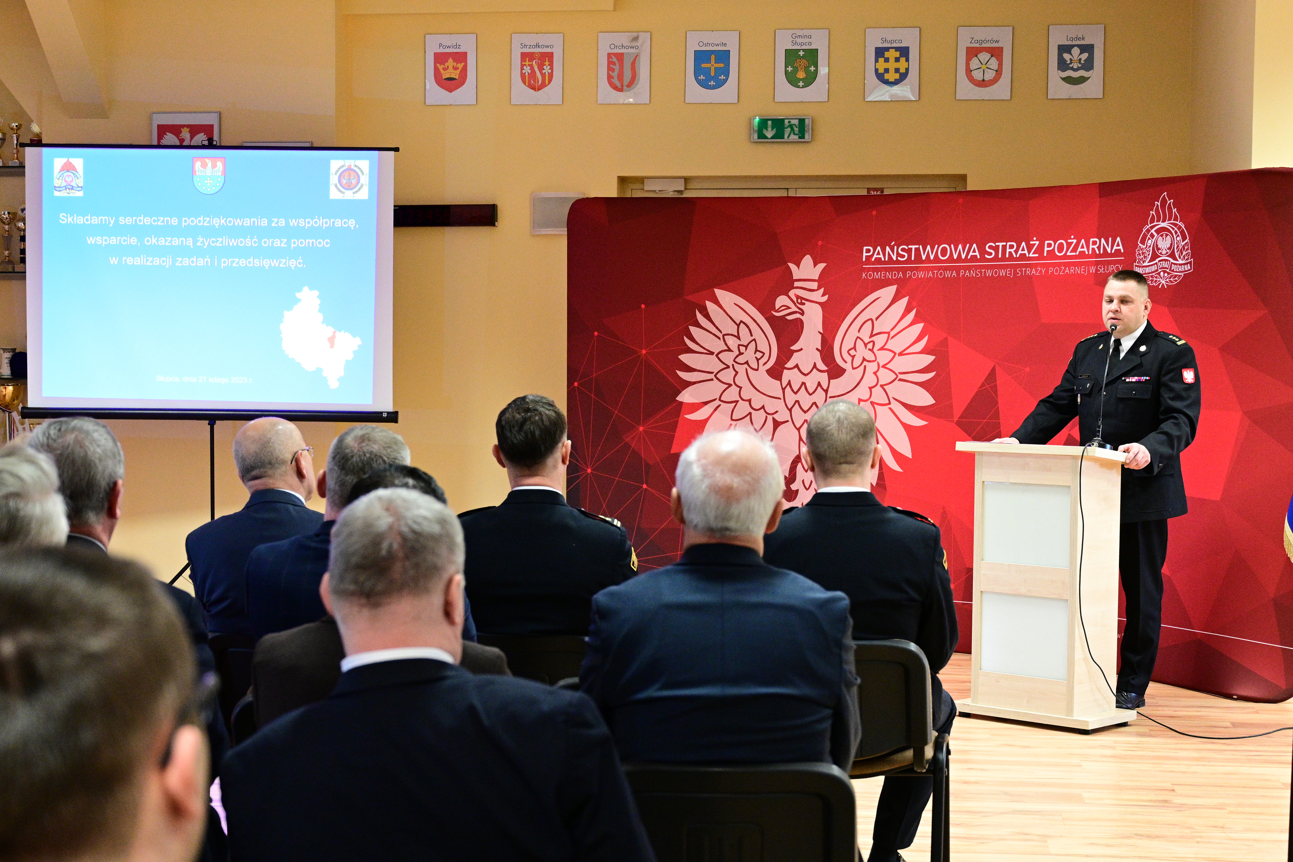 Komendant Powiatowy bryg. Zbigniew Rzemyszkiewicz przedstawił w formie prezentacji multimedialnej informacje dotyczące działalności Komendy Powiatowej PSP w Słupcy w roku 2022 oraz nakreślił główne kierunki działań i cele wyznaczone dla Słupeckiej Komendy na rok 2023. Skierował także słowa podziękowania dla władz samorządowych dziękując za całoroczną współpracę oraz otrzymane wsparcie finansowe.