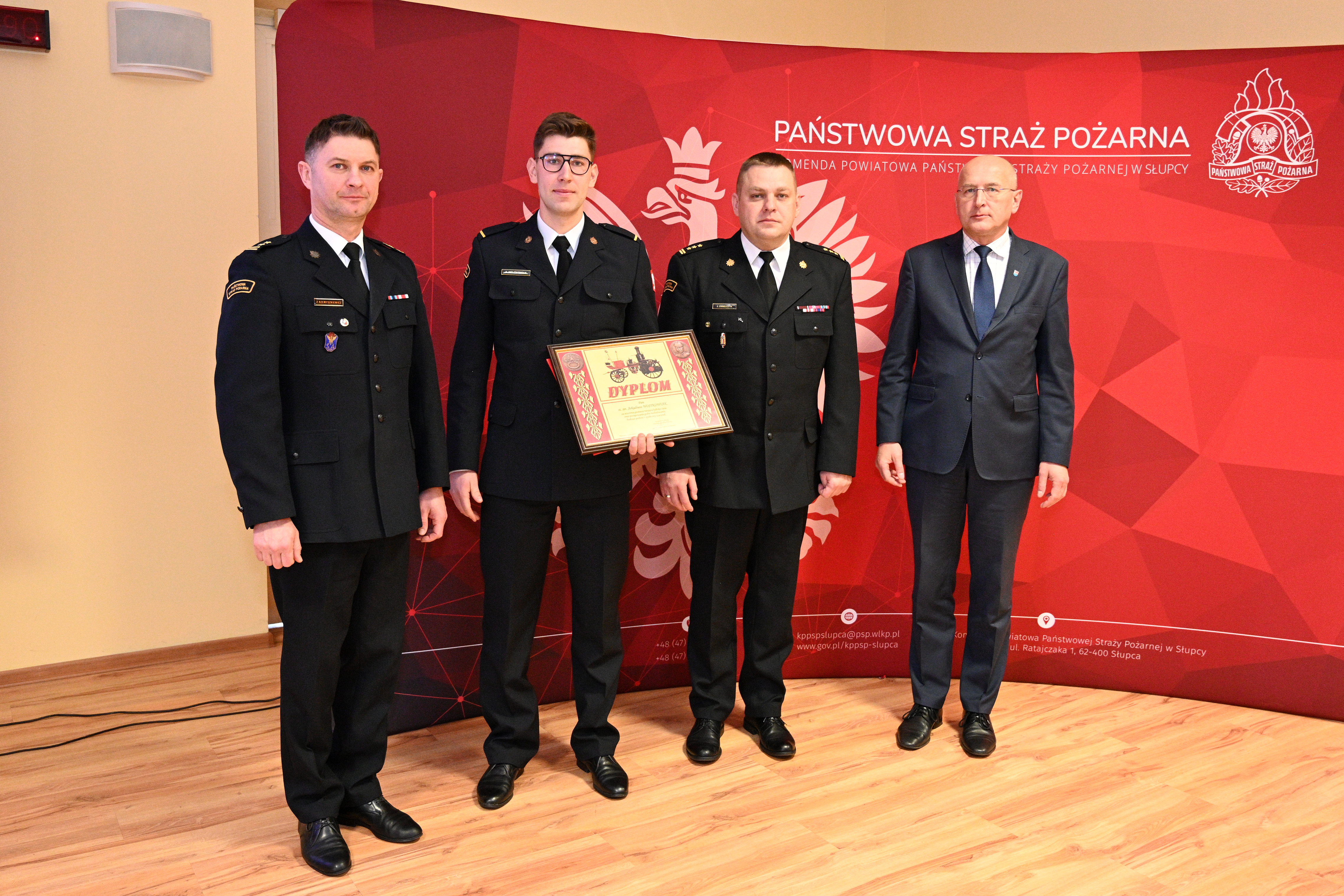 Po podsumowaniu rocznym nastąpiło wręczenie dyplomu Komendanta Głównego st. str. Arkadiuszowi Wojtkowiakowi, który 17 stycznia przyczynił się do uratowania życia jednej z osób w wypadku komunikacyjnym.