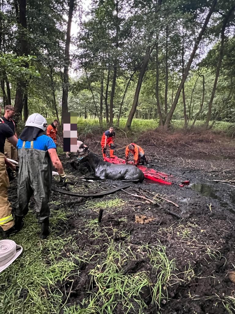 23 lipca o godzinie 19:35 do Stanowiska Kierowania Komendanta Powiatowego PSP w Słupcy wpłynęło zgłoszenie o potrzebie ratowania trzech koni, które ugrzęzły w bagnie w miejscowości Skrzynka gmina Ostrowite. Do pomocy zwierzętom zadysponowano zastępy z JRG Słupca, OSP Ostrowite i OSP Kosewo. Po przybyciu na miejsce jednostek ochrony przeciwpożarowej i przeprowadzeniu rozpoznania przystąpiono do próby ewakuacji zwierząt przy użyciu sprzętu do ratownictwa wodnego, lin oraz węży pożarniczych. Działania wspierane były przez właściciela koni, który na bieżąco oceniał stan i zachowanie zwierząt. Po około czterdziestu minutach akcji zwierzęta zostały uwolnione, a właściciel stwierdził, że w tej chwili nie wymagają one opieki lekarza weterynarii.