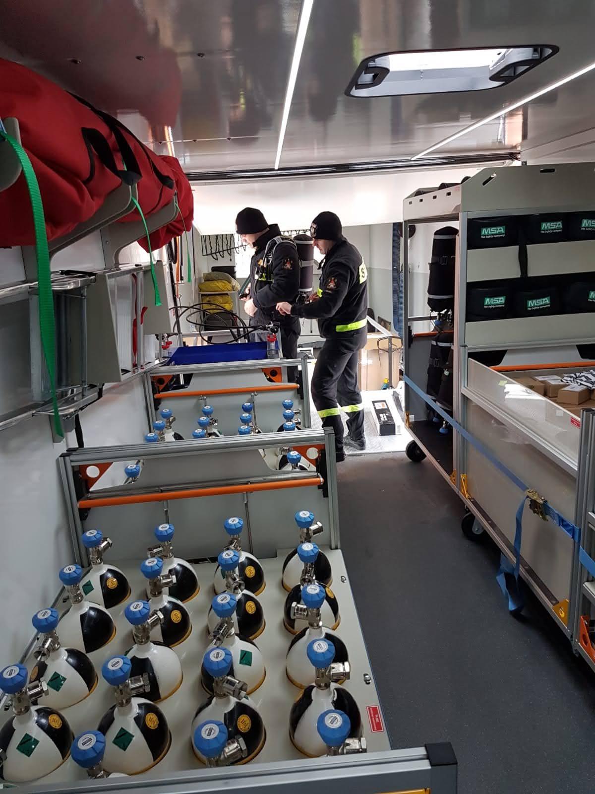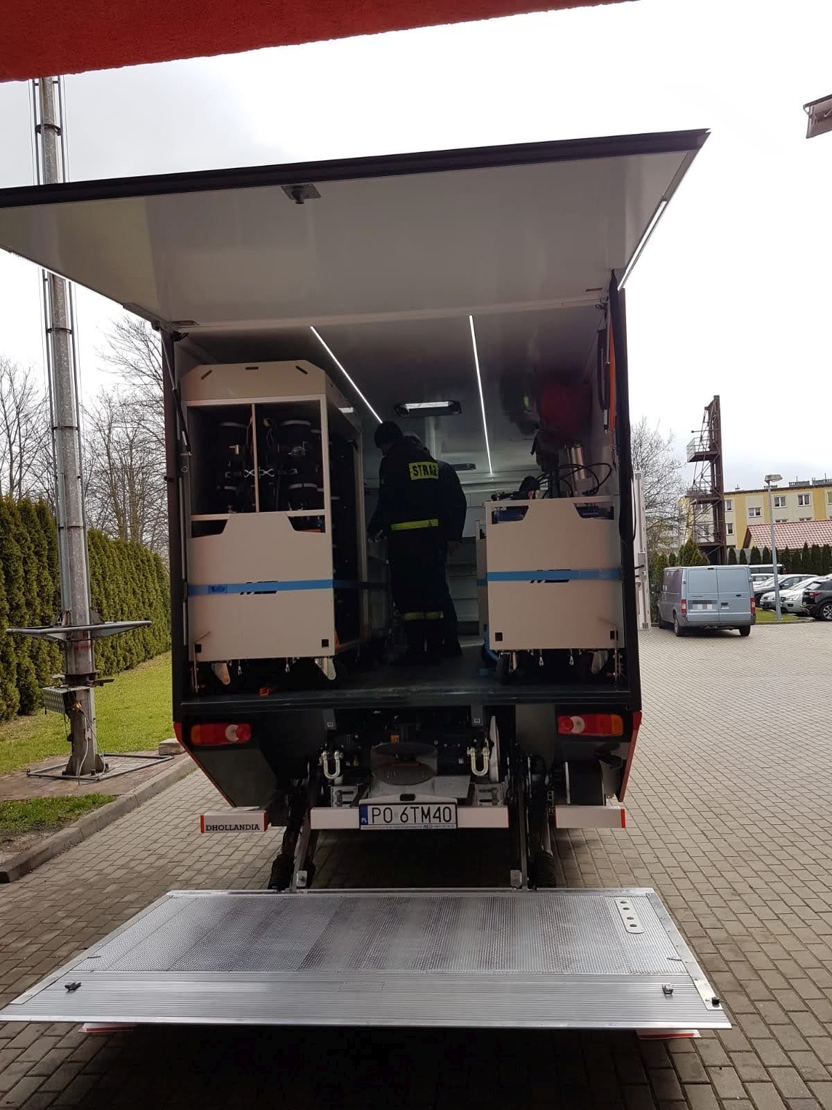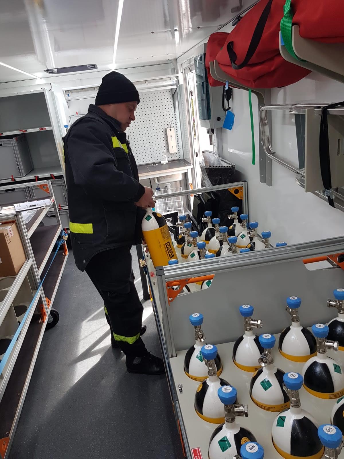 Samochód został wyposażony m.in w następujący sprzęt: aparaty oddechowe nadciśnieniowe, maski oddechowe, sygnalizatory bezruchu, system łączności do masek, butle stalowe i kompozytowe na sprężone powietrze, zestaw ratownictwa medycznego R0, agregat prądotwórczy, kompresor do ładowania butli, stół składany, komputerowe stanowisko kontrolno-pomiarowe do badań aparatów i masek, laptop, myjkę do masek, suszarkę do masek i sprzęt warsztatowy.