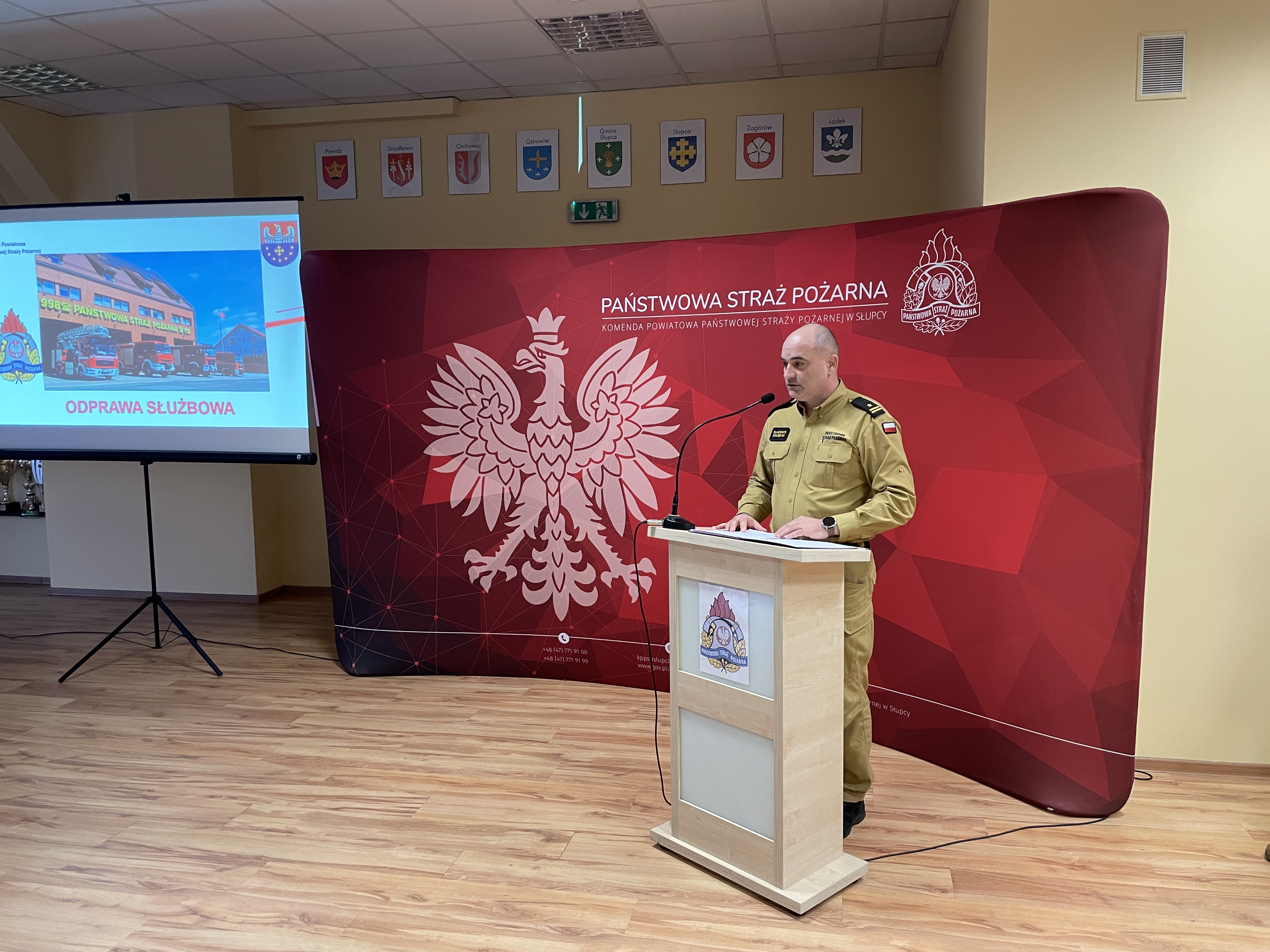W prezentacji Komendant Powiatowy Państwowej Straży Pożarnej w Słupcy mł. bryg. Sławomir Gołębiak przedstawił sprawozdanie z działalności Komendy za 2024 rok.