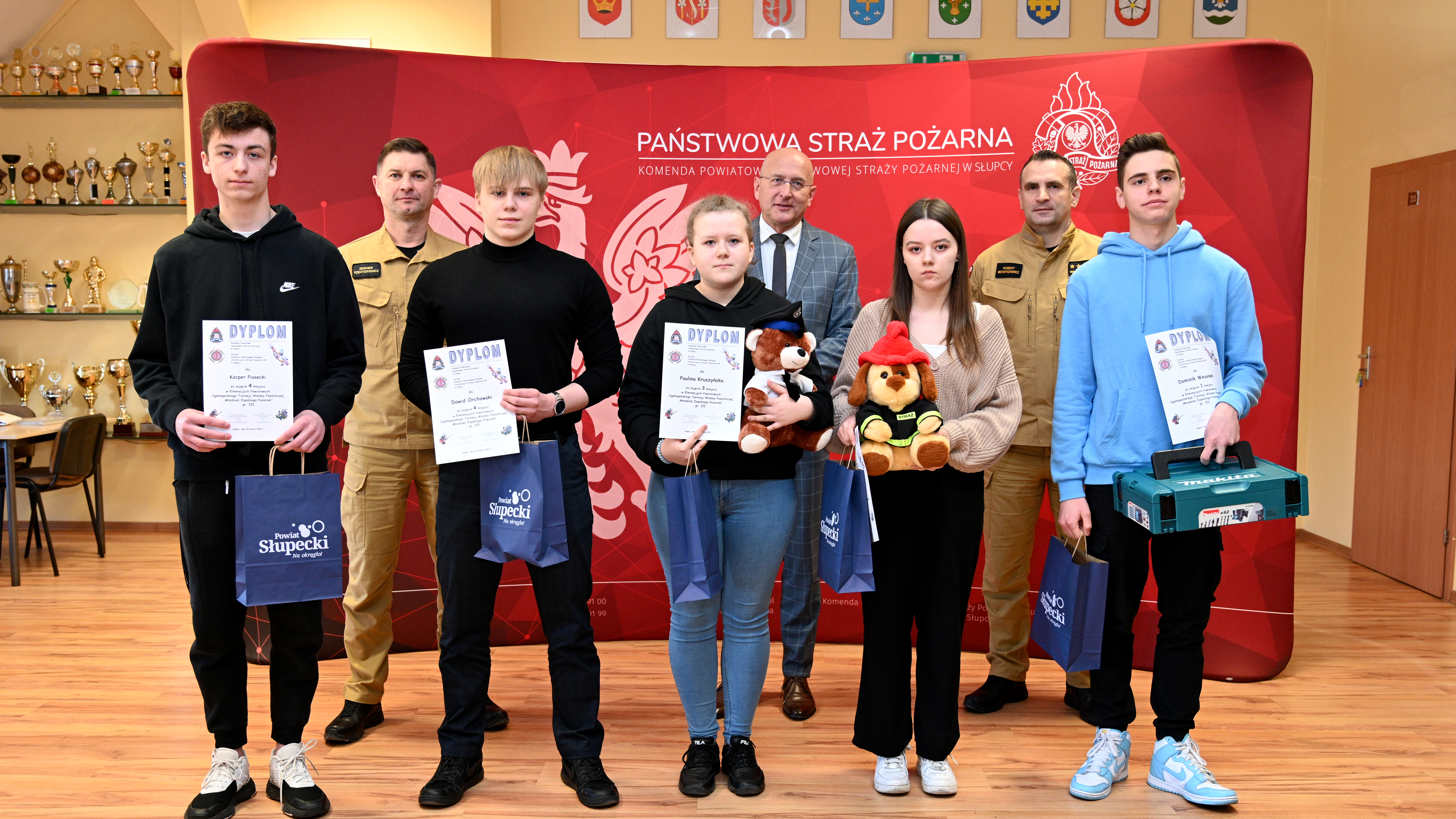 Dyplomy i upominki wręczali Starosta Słupecki Jacek Bartkowiak oraz Komendant Powiatowy Państwowej Straży Pożarnej w Słupcy bryg. Zbigniew Rzemyszkiewicz .