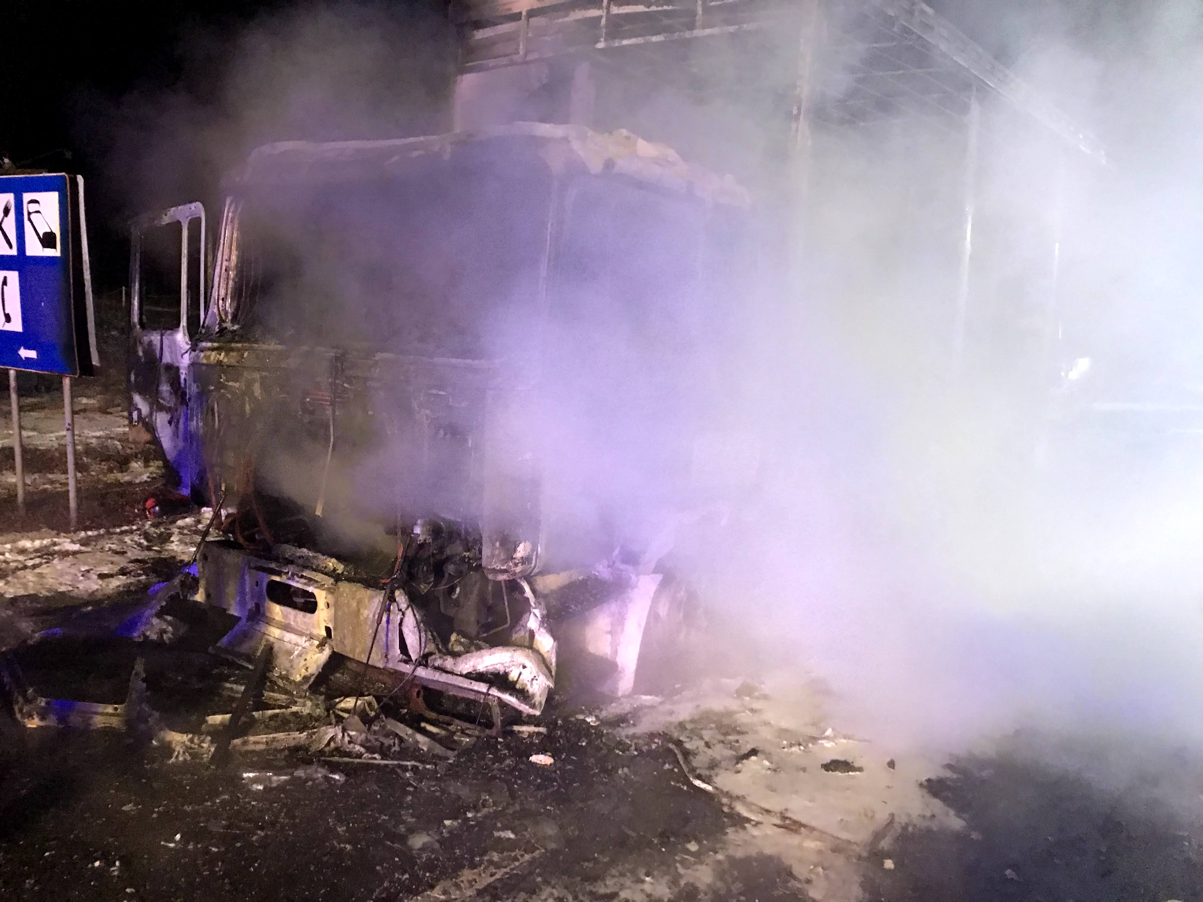 W dniu 16 lutego o godzinie 19.16 do SKKP w Słupcy wpłynęło zgłoszenie o pożarze samochodu ciężarowego na DK 92 w miejscowości Wilczna gm. Słupca. Strażacy po dojeździe zabezpieczyli miejsce zdarzenia, rota ubrana w sprzet ochrony dróg oodechowych podała dwa prądy piany ciężkiej na palący się samochód. Nastepnie po ugaszeniu pożaru dokonano pomiaru kamerą termowizyjną spalonego samochodu. Na miejscu opracowały jednostki z JRG Słupca oraz OSP z Kamienia, Wilcznej i Lądku.