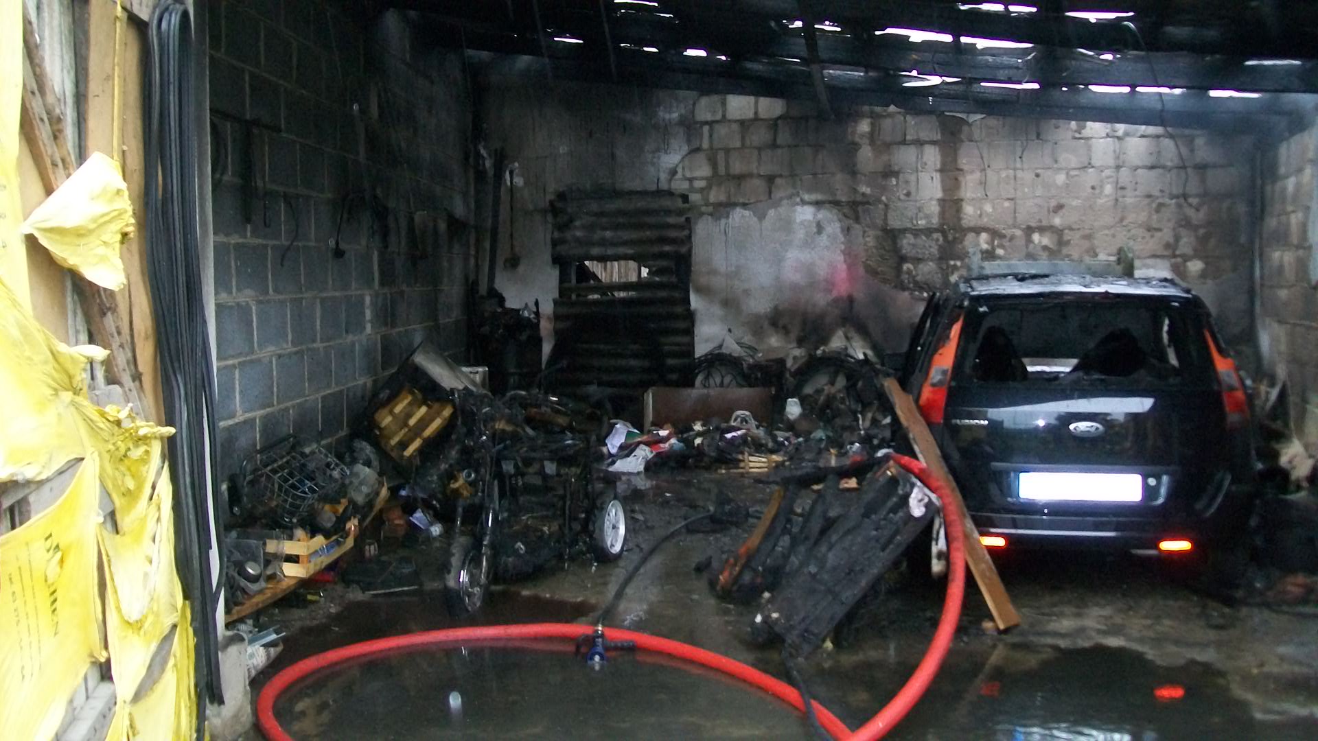 Pożar samochodu w garażu