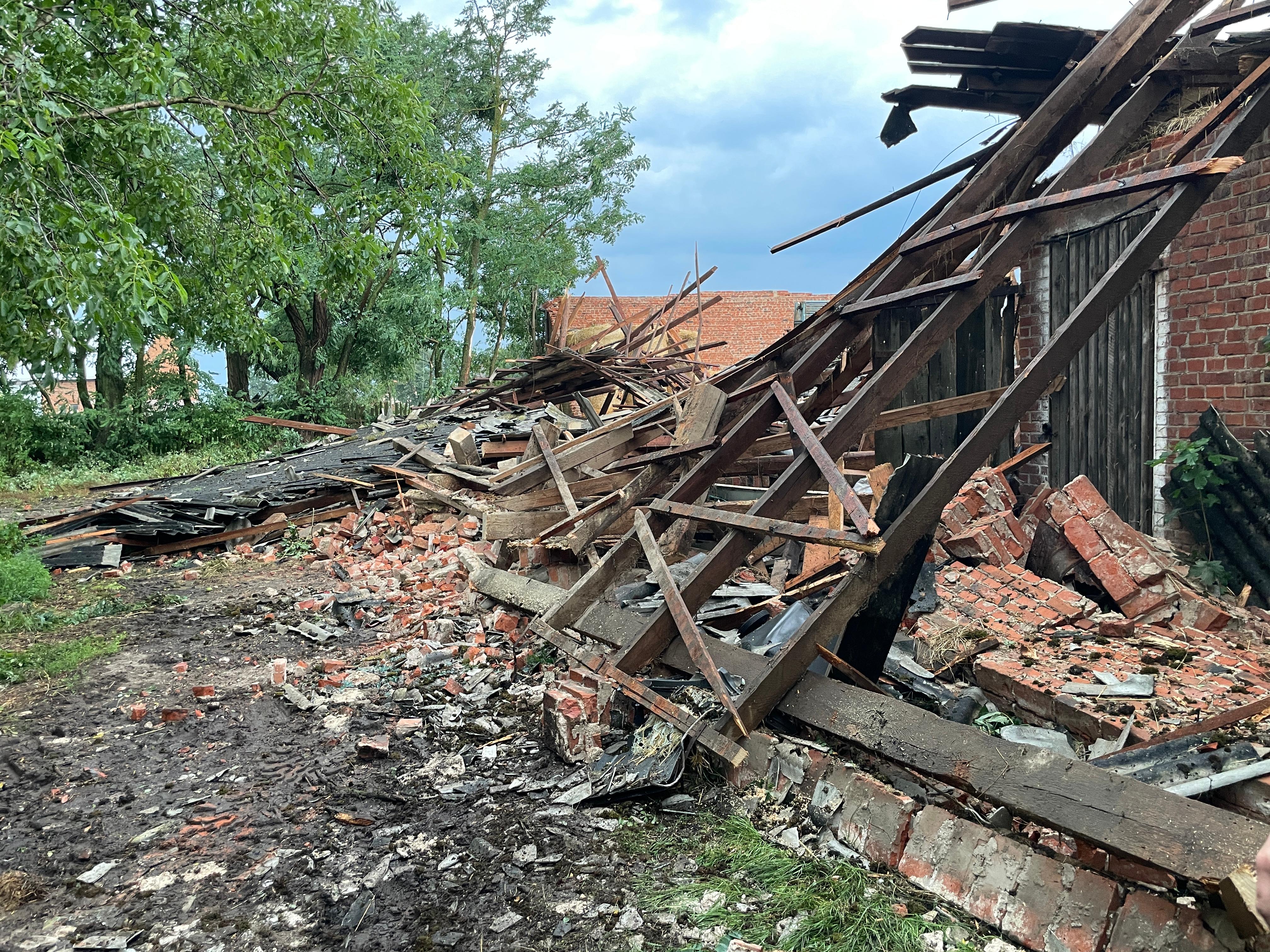 Ponadto kilka zdarzeń dotyczyło uszkodzonych oraz zerwanych dachów z budynków mieszkalnych i gospodarczych. Całkowicie uszkodzone zasiały dwie stodoły.