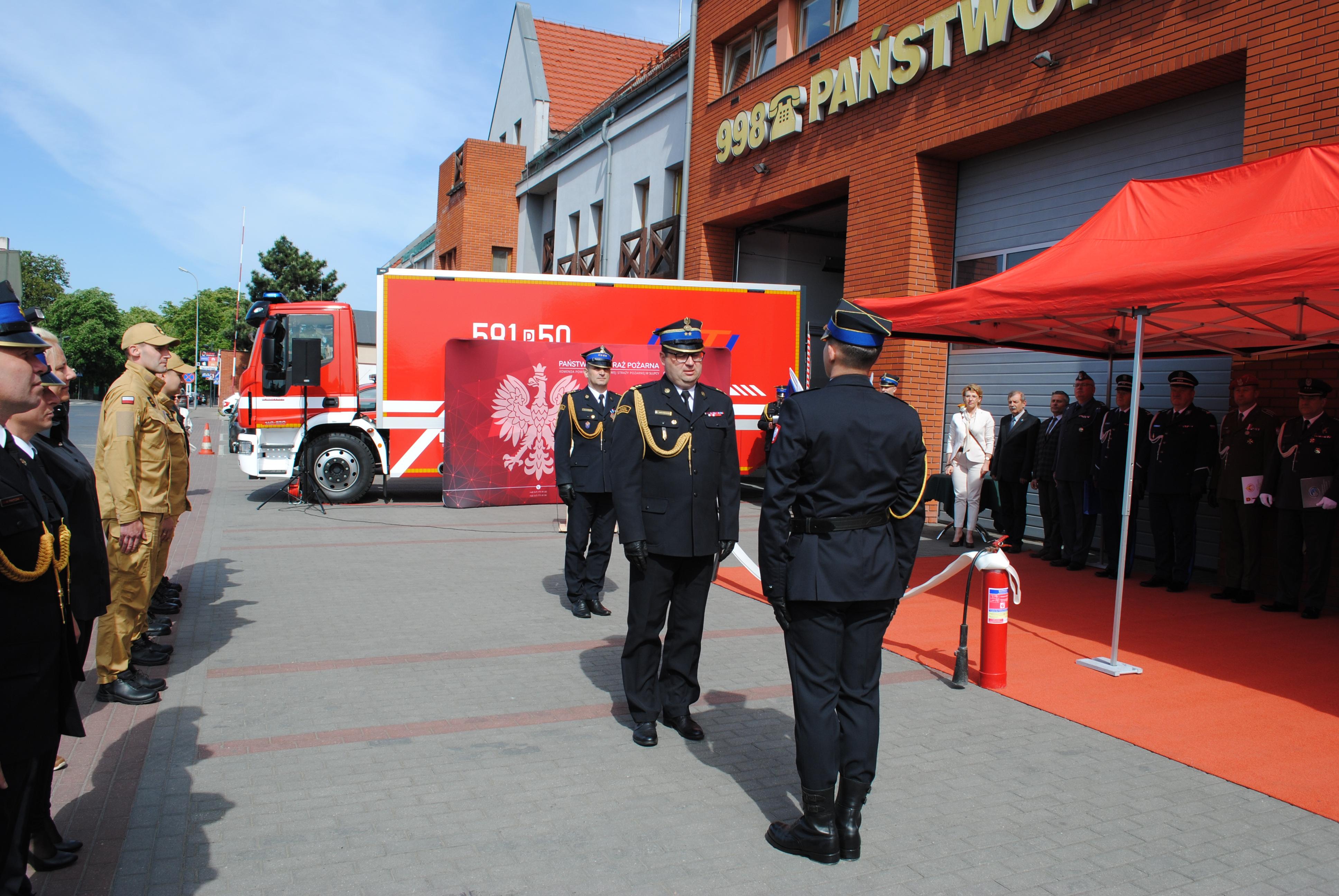 16 maja 2024 roku na terenie Komendy Powiatowej Państwowej Straży Pożarnej w Słupcy odbyła się uroczysta zbiórka z okazji Dnia Strażaka.