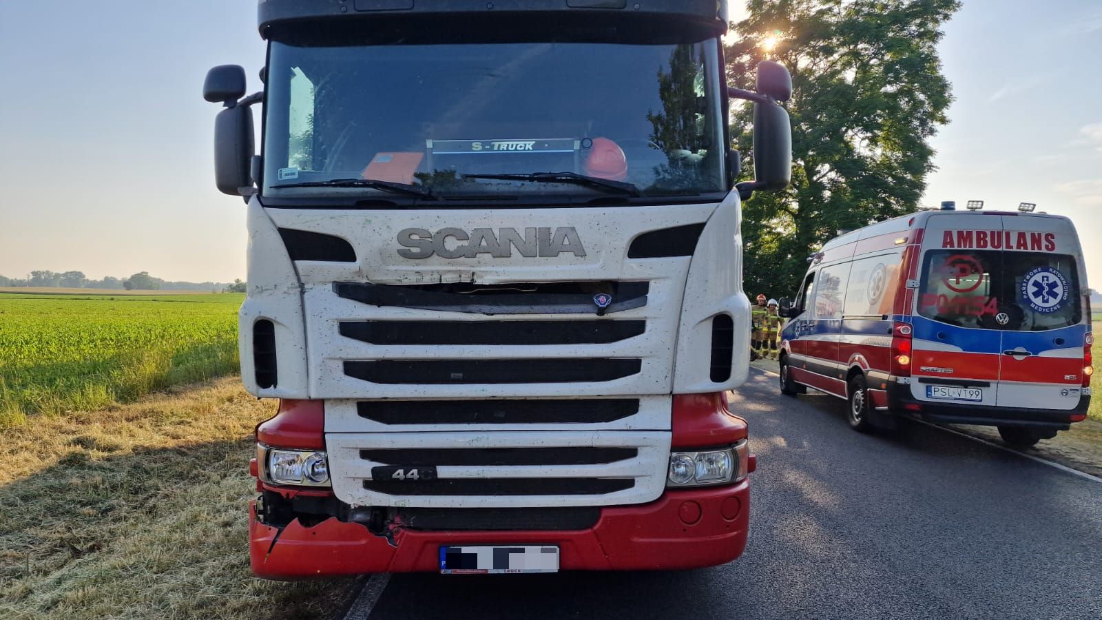 WYPADEK SAMOCHODU CIĘŻAROWEGO Z CIĄGNIKIEM ROLNICZYM