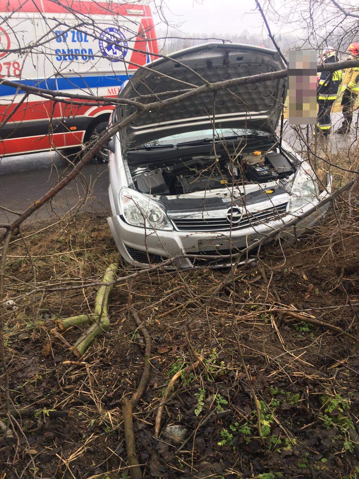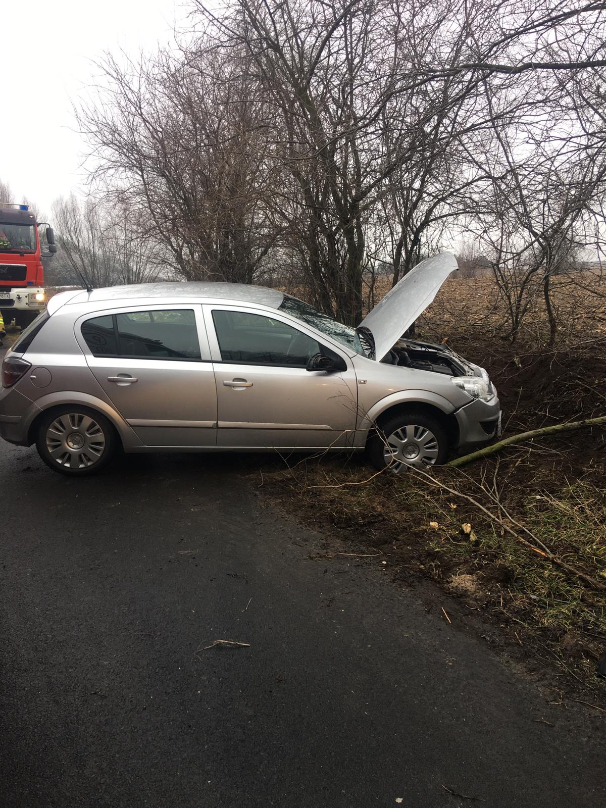 W chwili przybycia strażaków na miejsce zdarzenia zastano samochód osobowy znajdujący się częściowo poza jednią a w nim kobietę. Była świadoma i przytomna bez widocznych obrażeń zewnętrznych.