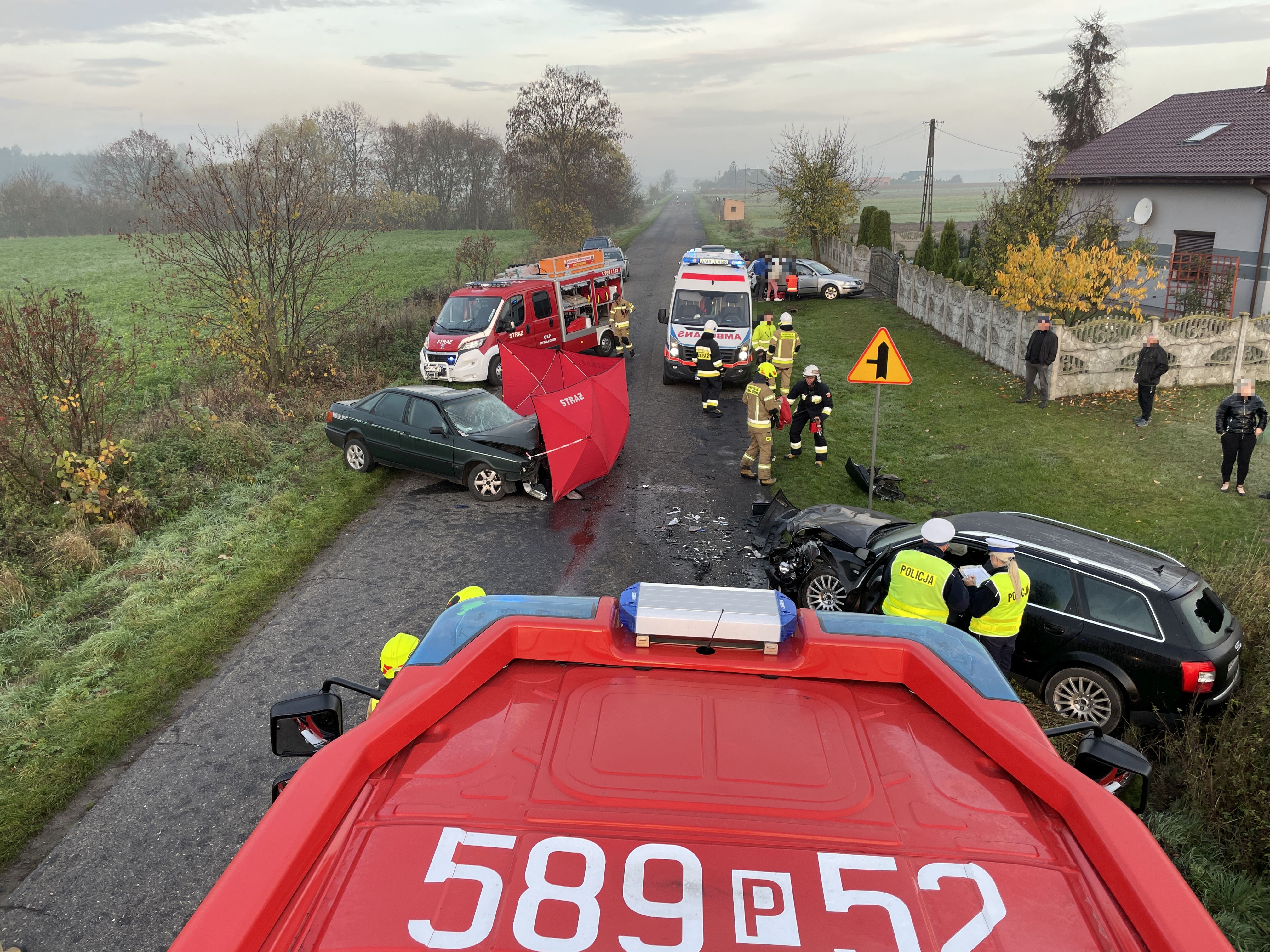 ZDERZENIE CZOŁOWE DWÓCH SAMOCHODÓW W GM. ZAGÓRÓW