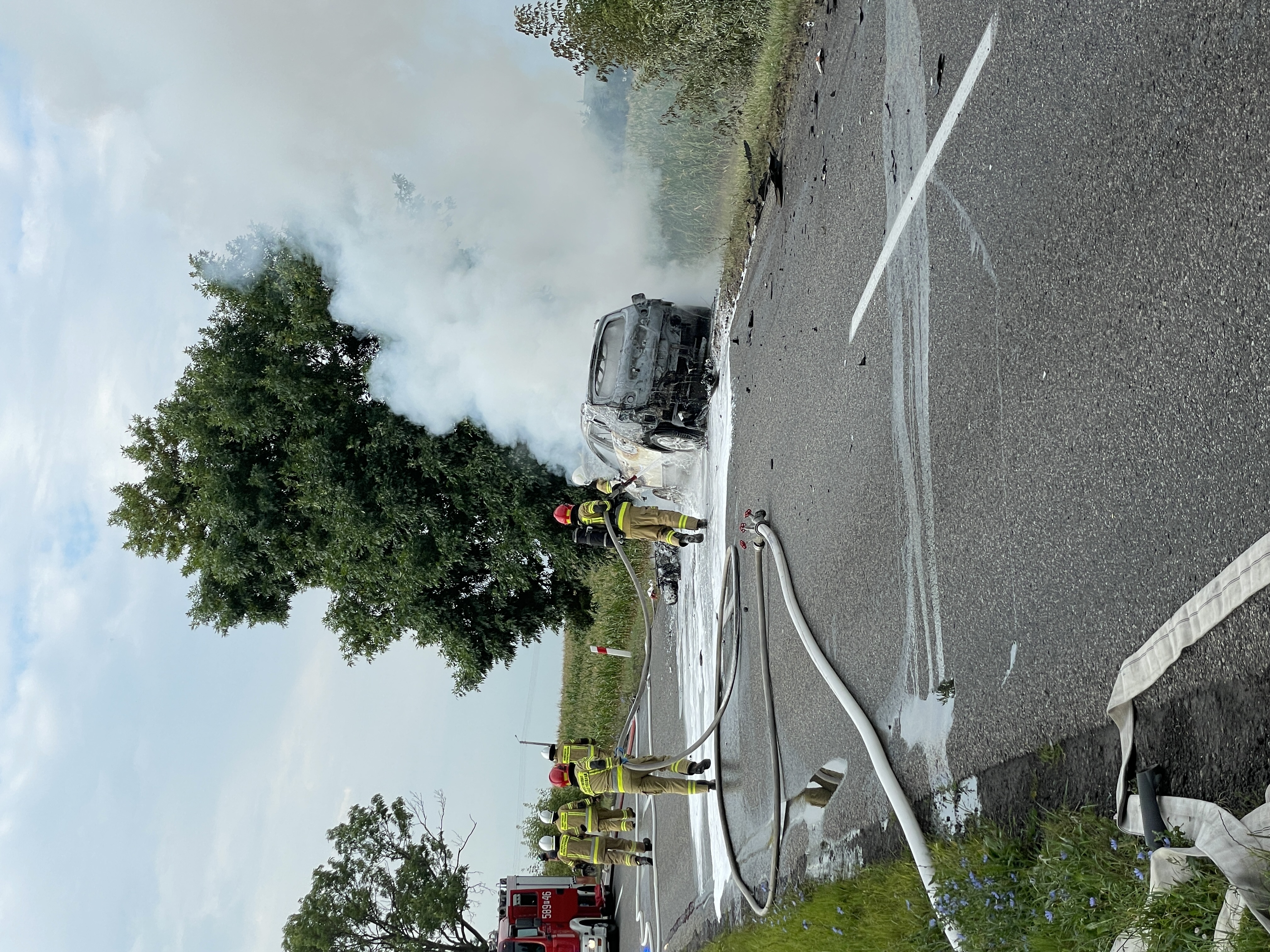 14 sierpnia o godzinie 7.56 do Stanowiska Kierowania Komendanta Powiatowego PSP w Słupcy wpłynęło zgłoszenie o zderzeniu samochodu osobowego z motocyklem – samochód w płomieniach na drodze z Wólki do Witkowa. Po dotarciu pierwszych zastępów straży pożarnej na miejsce zdarzenia zastano pożar samochodu oraz leżącego przed nim motocykla, uczestnicy zdarzenia dwie osoby z samochodu osobowego znajdowały się na poboczu drogi, natomiast kierującym motocyklem zajmował się zespół ZRM, który na miejsce zdarzenia dotarł razem z pierwszym zastępem straży pożarnej. Przez dłuższy czas trwała reanimacja poszkodowanego motocyklisty niestety nie udało się go uratować. Pozostałe dwie osoby zostały zabrane przez zespół ZRM do Szpitala.. Działania straży pożarnej trwały ponad 4 godziny. Podczas zdarzenia ruch na drodze wojewódzkiej 260 na wysokości 26.4 km był wstrzymany – Policja zorganizowała objazdy