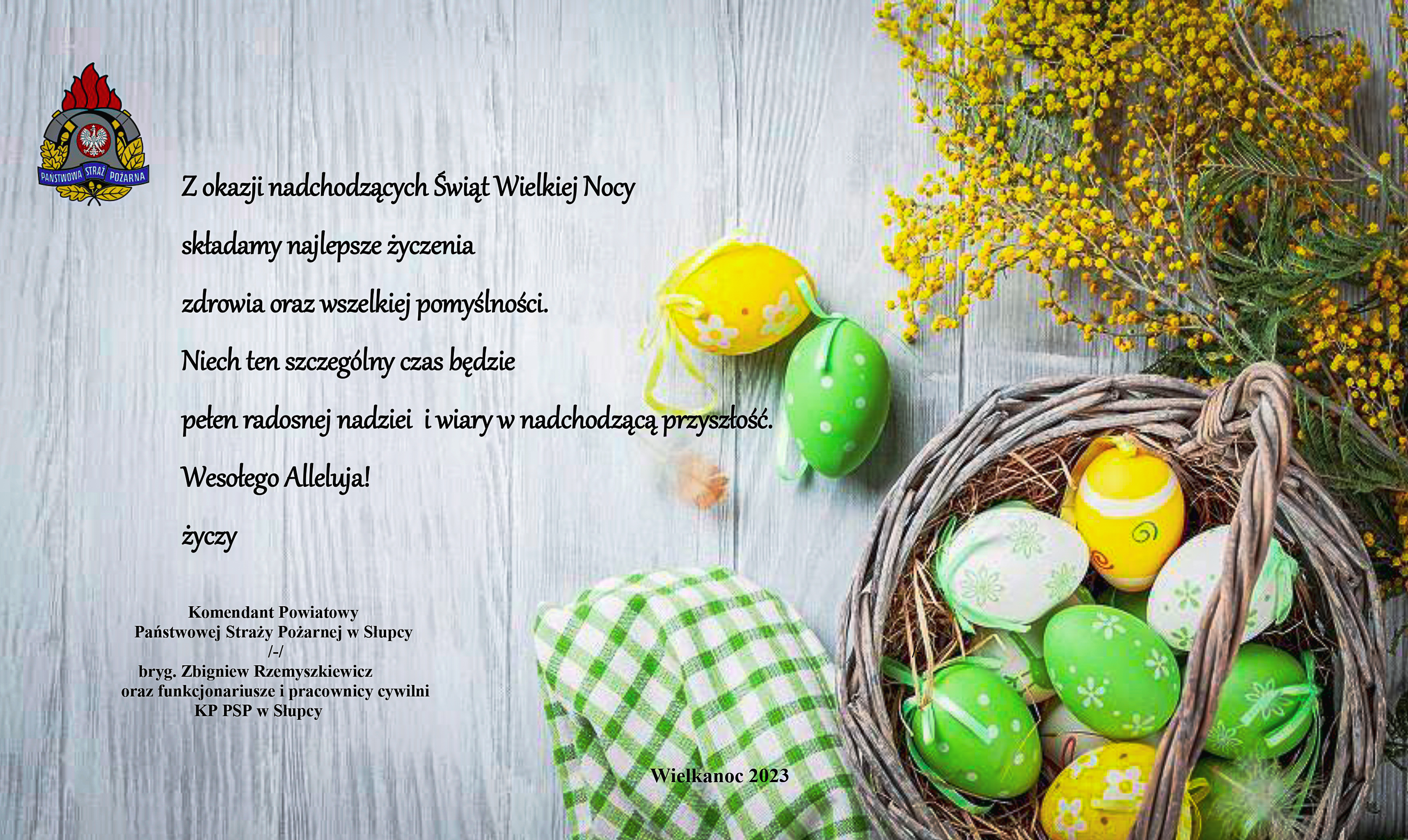 ŻYCZENIA WIELKANOCNE KOMENDANATA POWIATOWEGO PSP W SŁUPCY